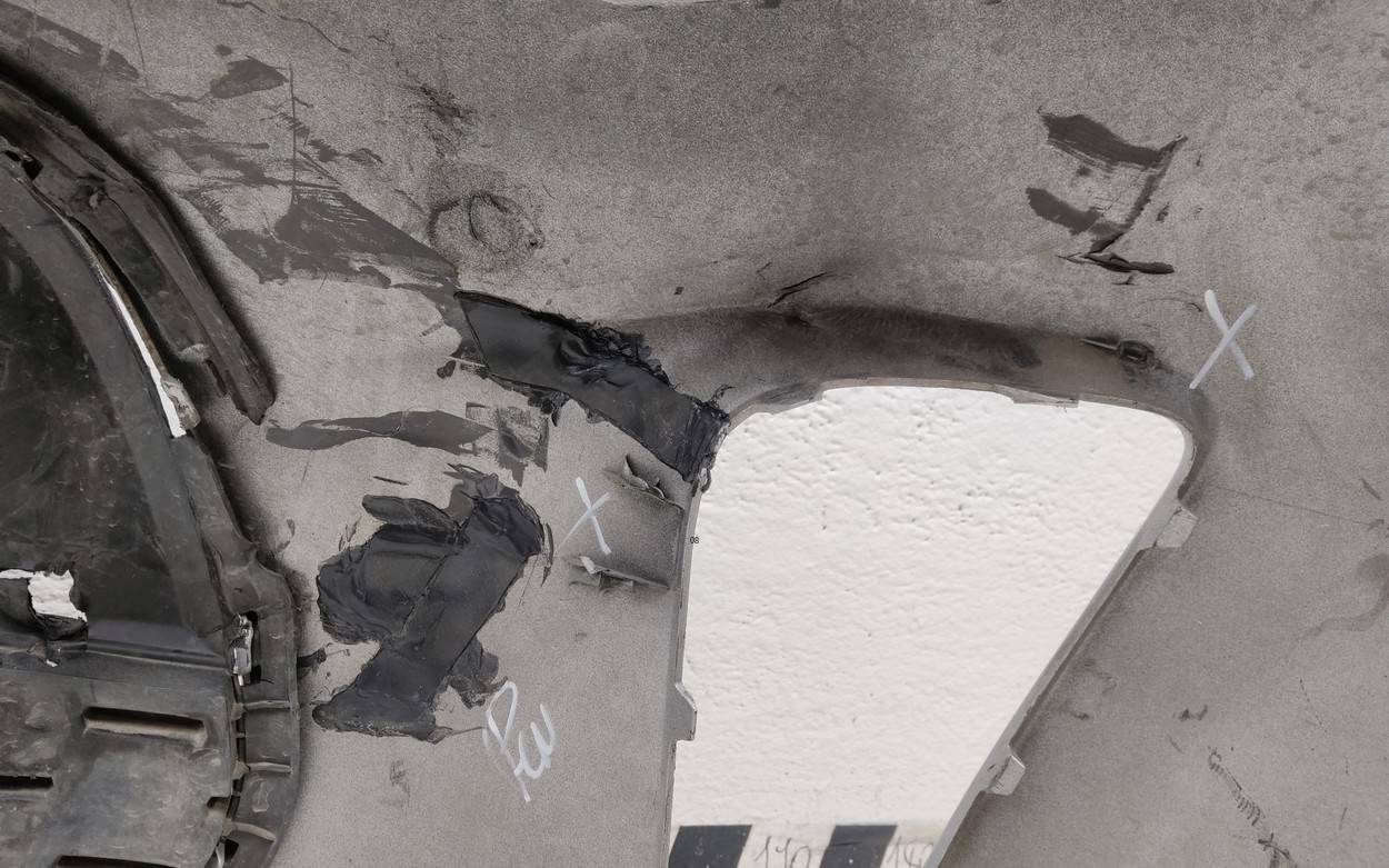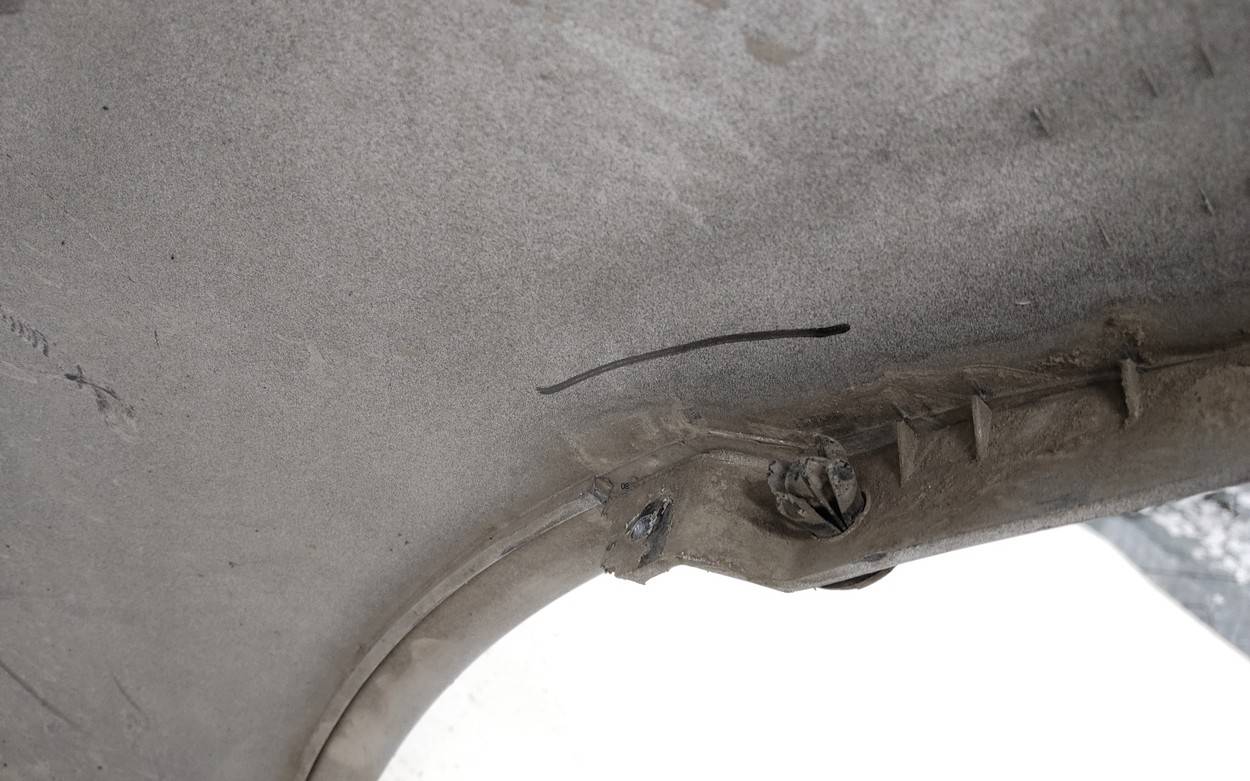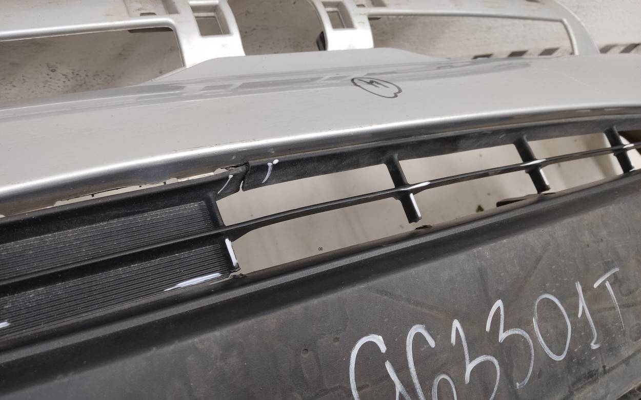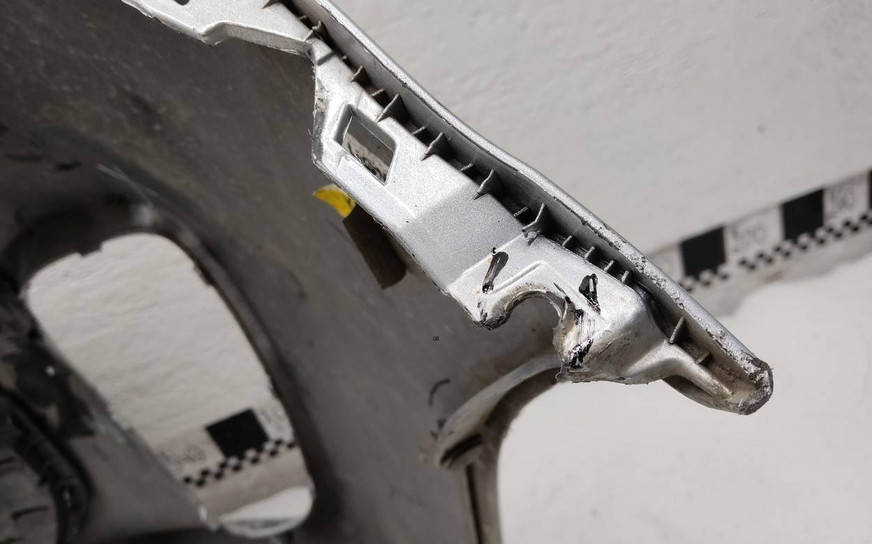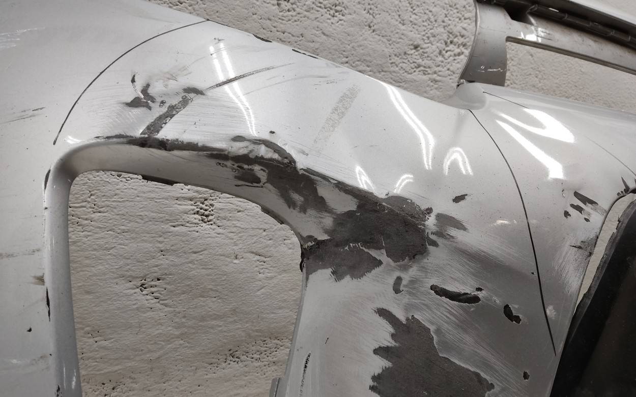 Состояние детали удовлетворительное. Белый цвет, царапины, потёртости. Вмятина в нижней части с правой стороны, небольшой надрыв локерной ленты с левой стороны, основные крепления целые. Ремонт вмятины и крепления
