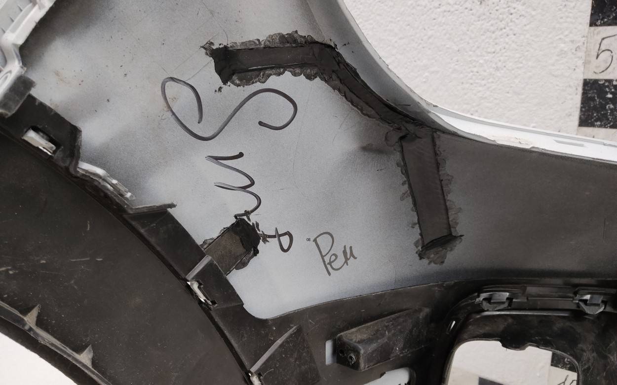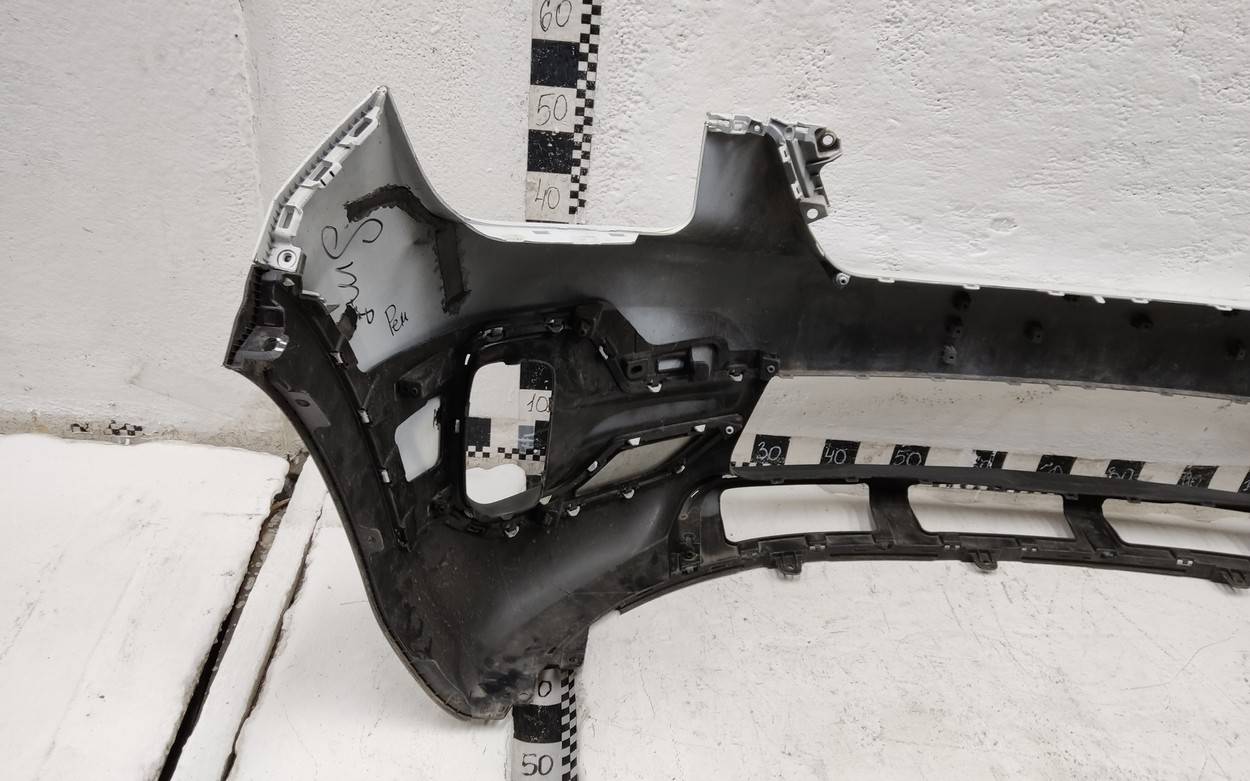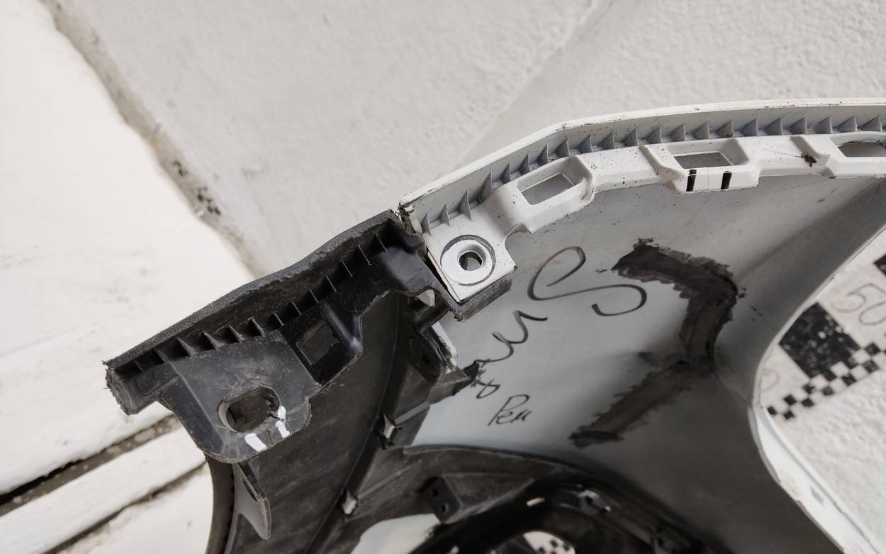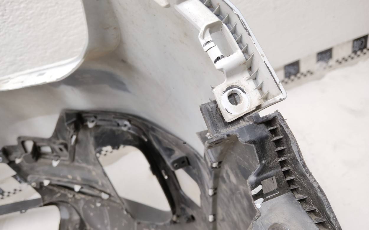 Состояние детали хорошее. Белого цвета. После небольшого ремонта, потёртости. Дефект двух креплений на бампере и двух на юбке. Потребуется незначительный дополнительный ремонт