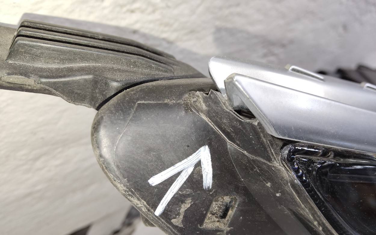 Состояние детали хорошее. Текстурная и крашеная часть вместе, потёртость на текстурной части. Сломано одно крепление. Потребуется ремонт
