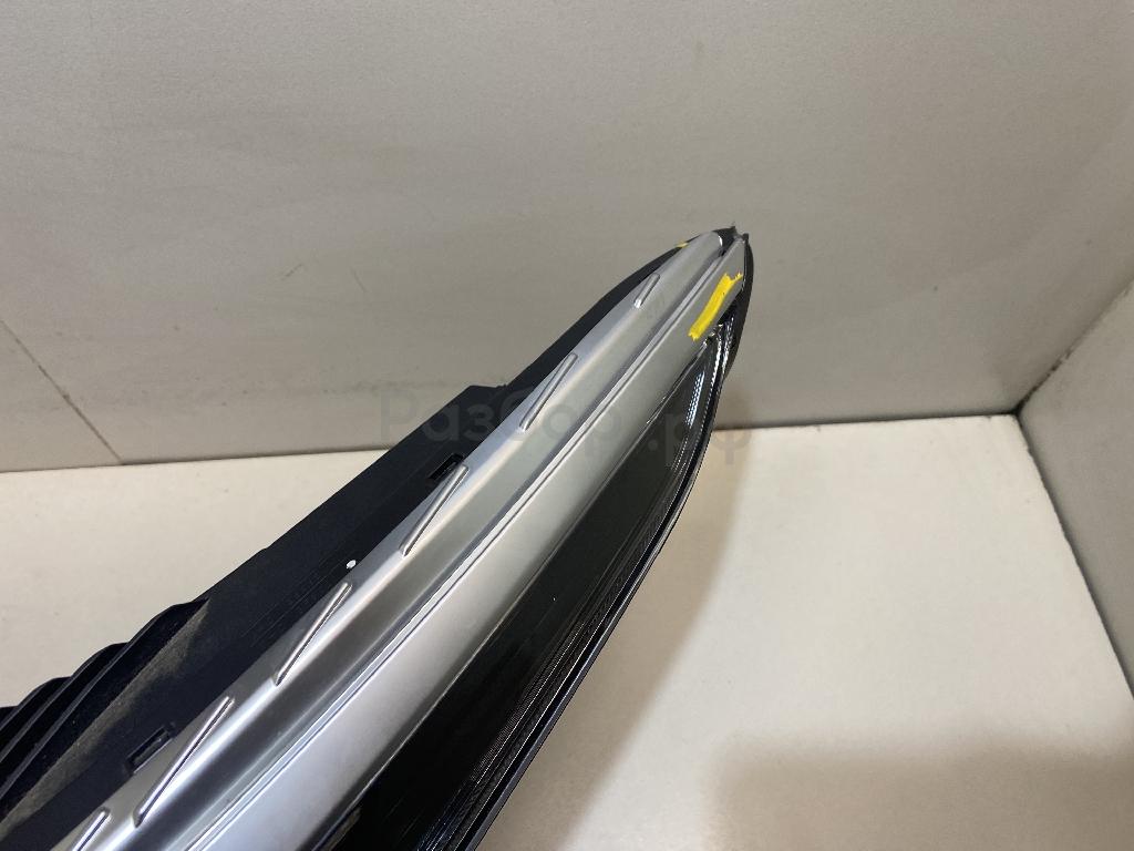 Состояние детали удовлетворительное. Серебристого цвета, потёртости, царапины. Трещинки пластика и сломано одно нижнее крепление. Потребуется ремонт и покраска