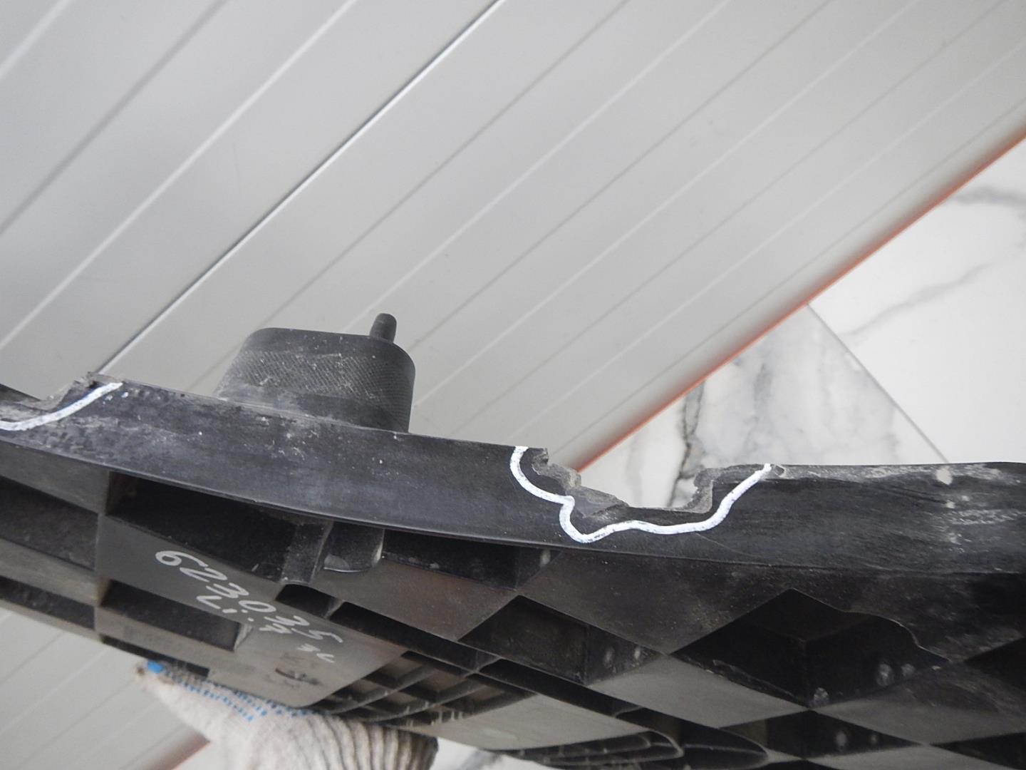 Состояние детали хорошее. Серого цвета под парктроники после ремонта, потёртость поверхности, дефект пластика на фото. Крепления целые. Потребуется дополнительный ремонт