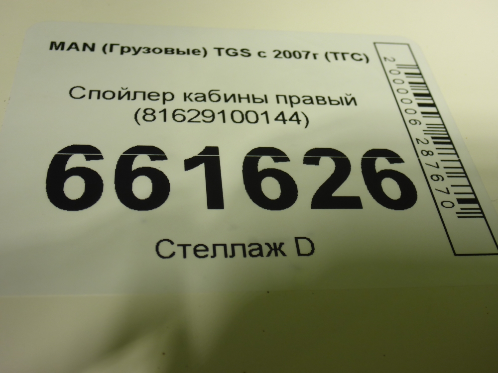 Спойлер кабины правый (81629100144), Повреждения (см.фото),