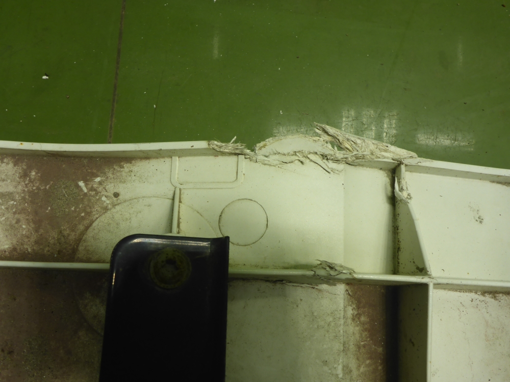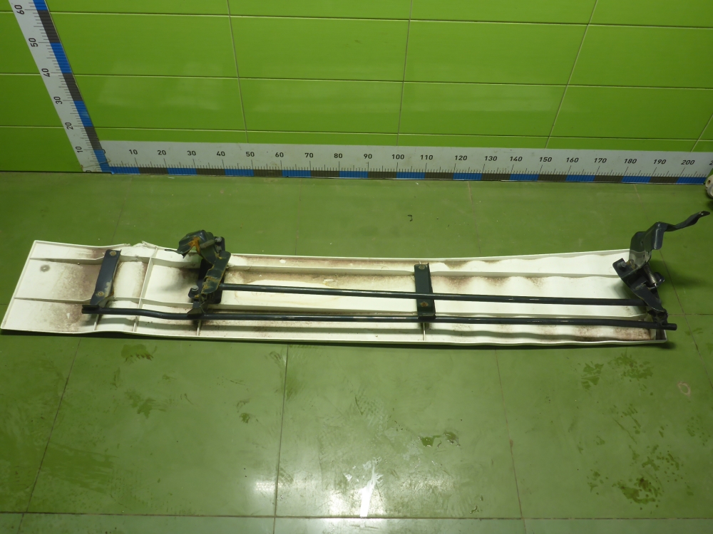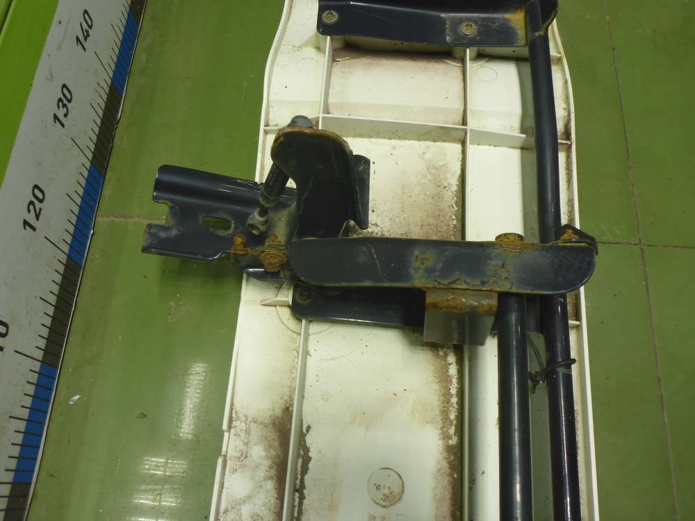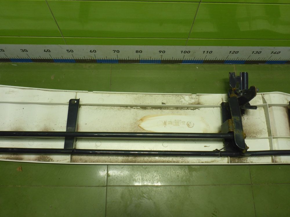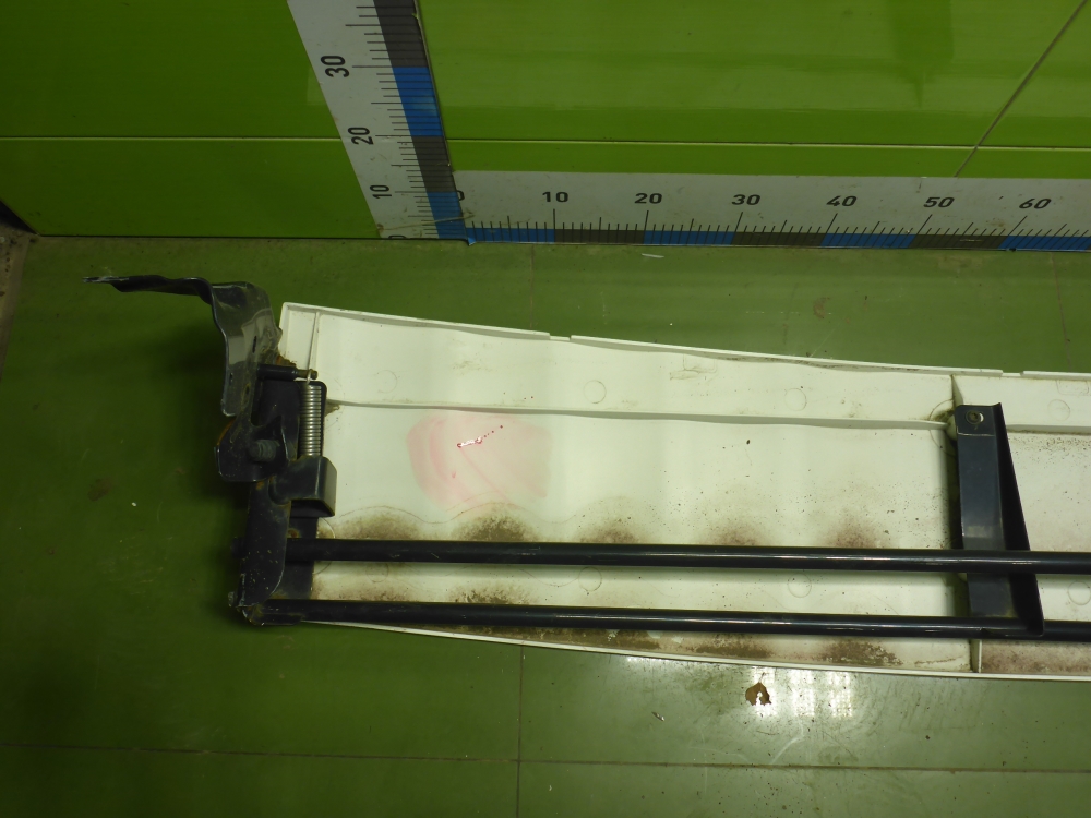 Состояние детали хорошее. Белого цвета, потертости, царапины. Небольшие трещинки пластика слева сверху и снизу, крепления целые. Потребуется ремонт и покраска