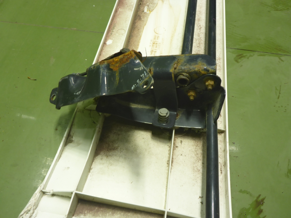 Состояние детали хорошее. Небольшая вмятина. Дефект одного кронштейна. Может потребоваться незначительный ремонт