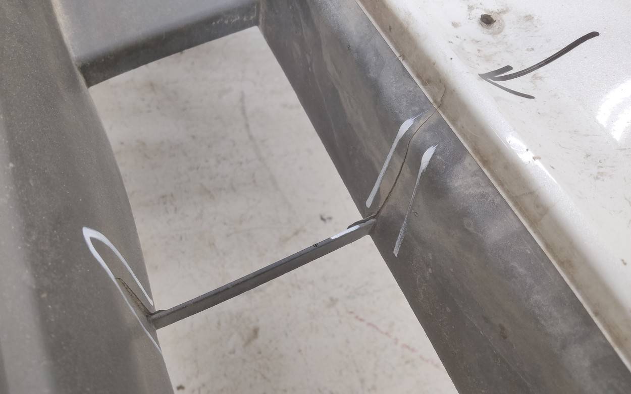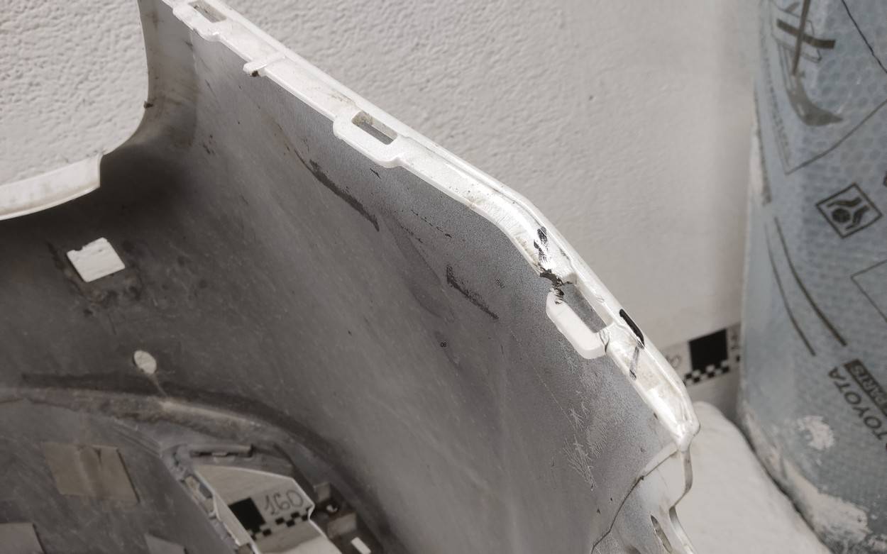 Состояние детали удовлетворительное. Белого цвета под парктроники и омыватели фар. Небольшие трещины, царапины. Сломан один замок. Потребуется ремонт