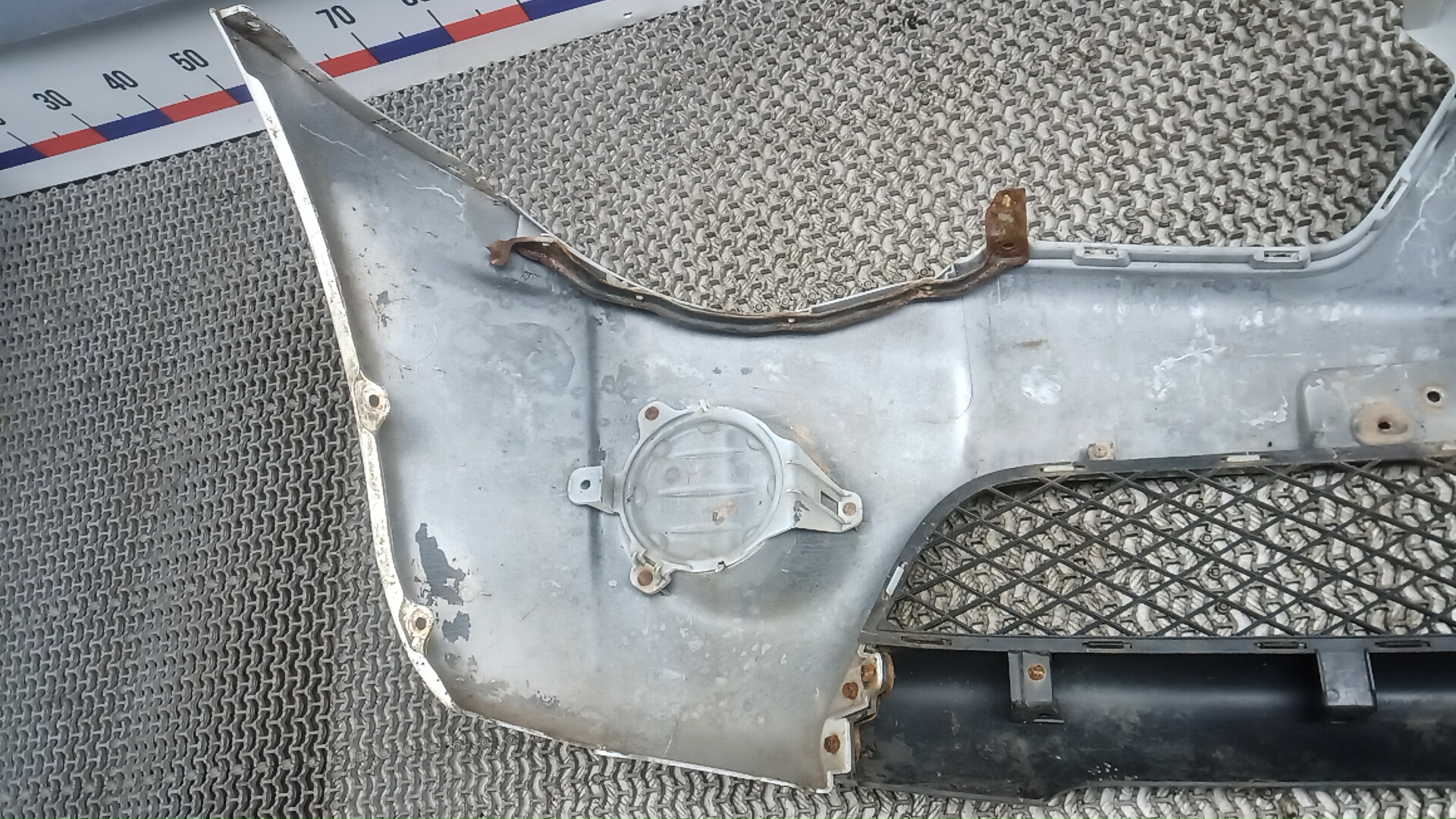 Состояние детали удовлетворительное. Чёрный цвет, потёртости, следы коррозии, отрезная деталь. Небольшая вмятина на поверхности. Ремонт вмятины, покраска