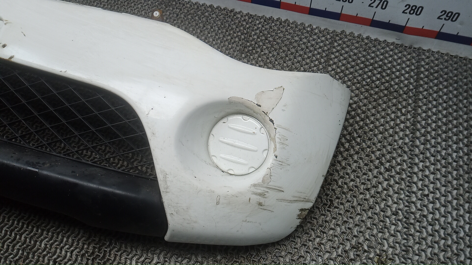 Состояние детали хорошее. Следы эксплуатации, цвет чёрный. Есть небольшая вмятина и царапина. Ремонт не требуется