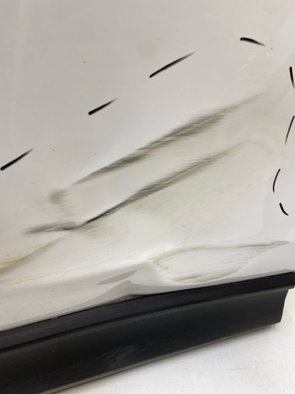 Состояние детали удовлетворительное. Синего цвета, скол ЛКП. Небольшая вмятинка, дефект металла на фото. Потребуется ремонт