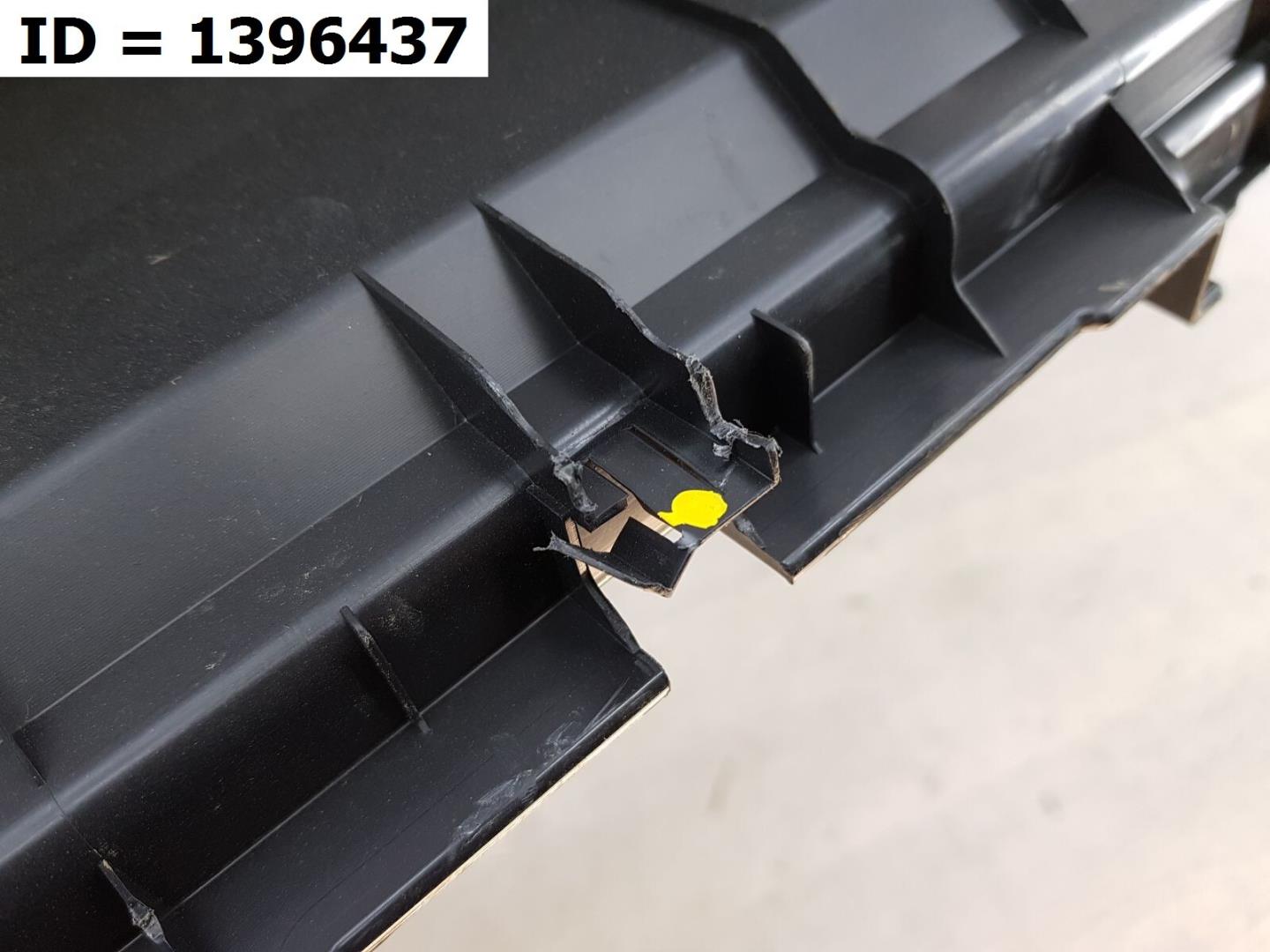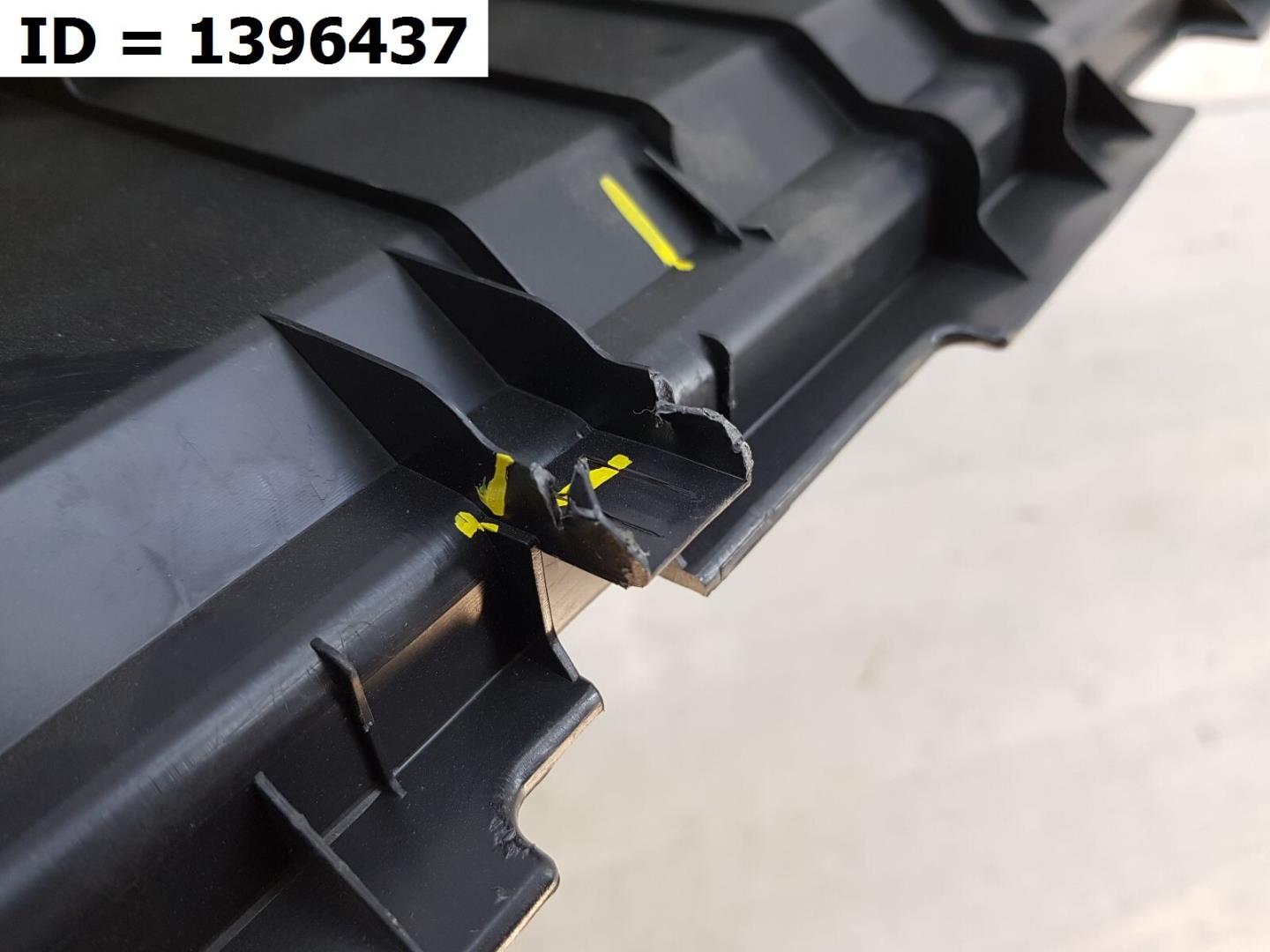 Состояние детали хорошее. Серого цвета, потёртости, царапины. Трещины на нижней решетке, небольшая деформация пластика справа, трещинки на креплениях, дефект крепления левой ПТФ. Потребуется ремонт и покраска