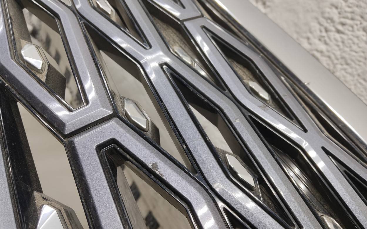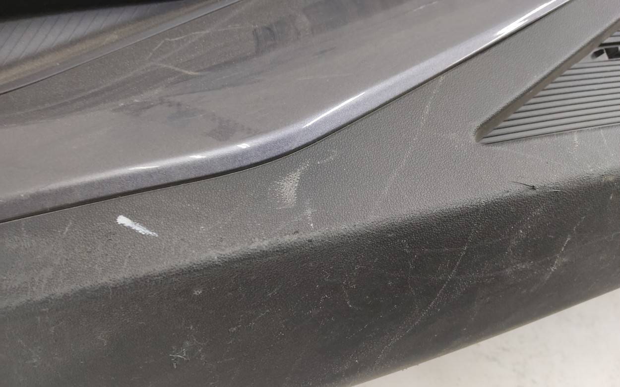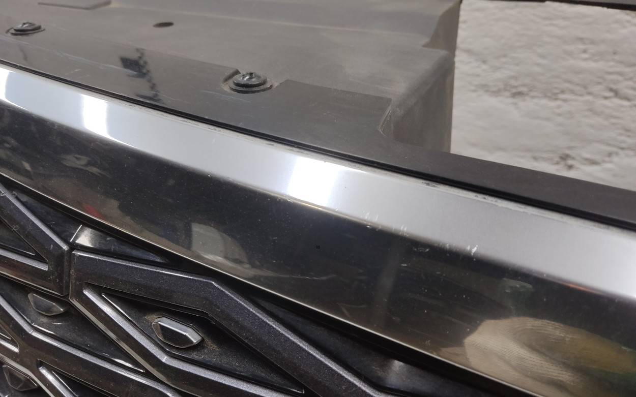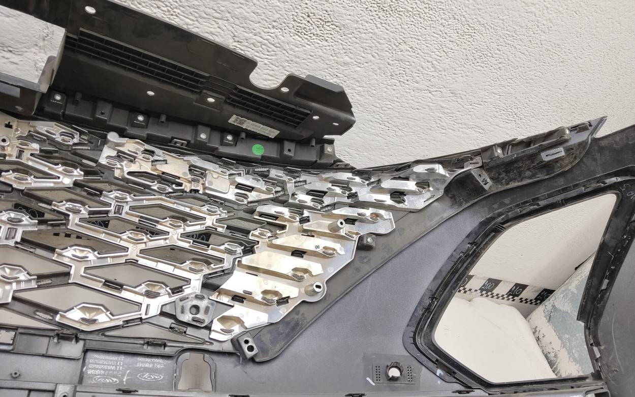 Состояние детали хорошее. Серого цвета под парктроники. Царапины. Отсутствуют два верхних боковых крепления и одно центральное под решетку. Потребуется незначительный ремонт