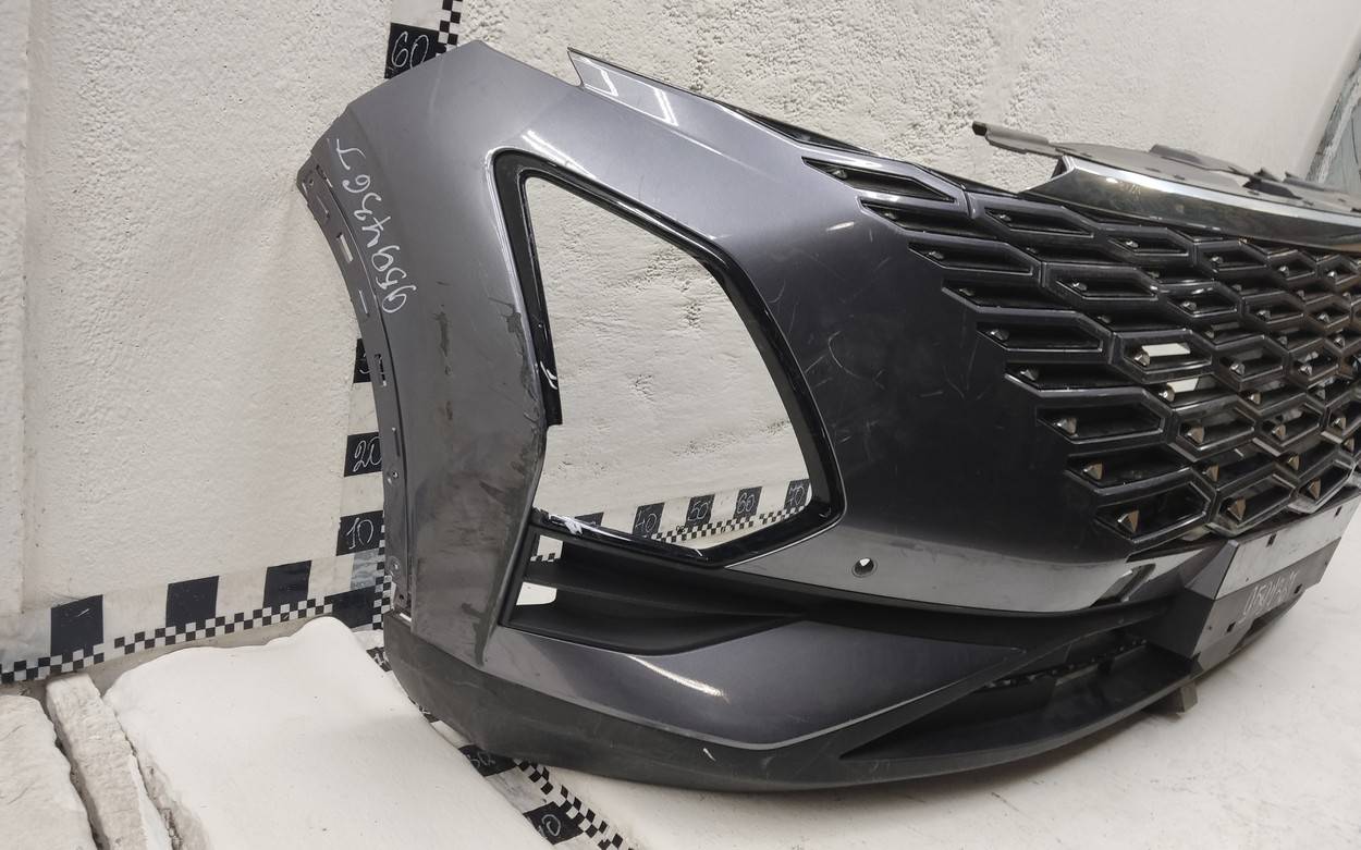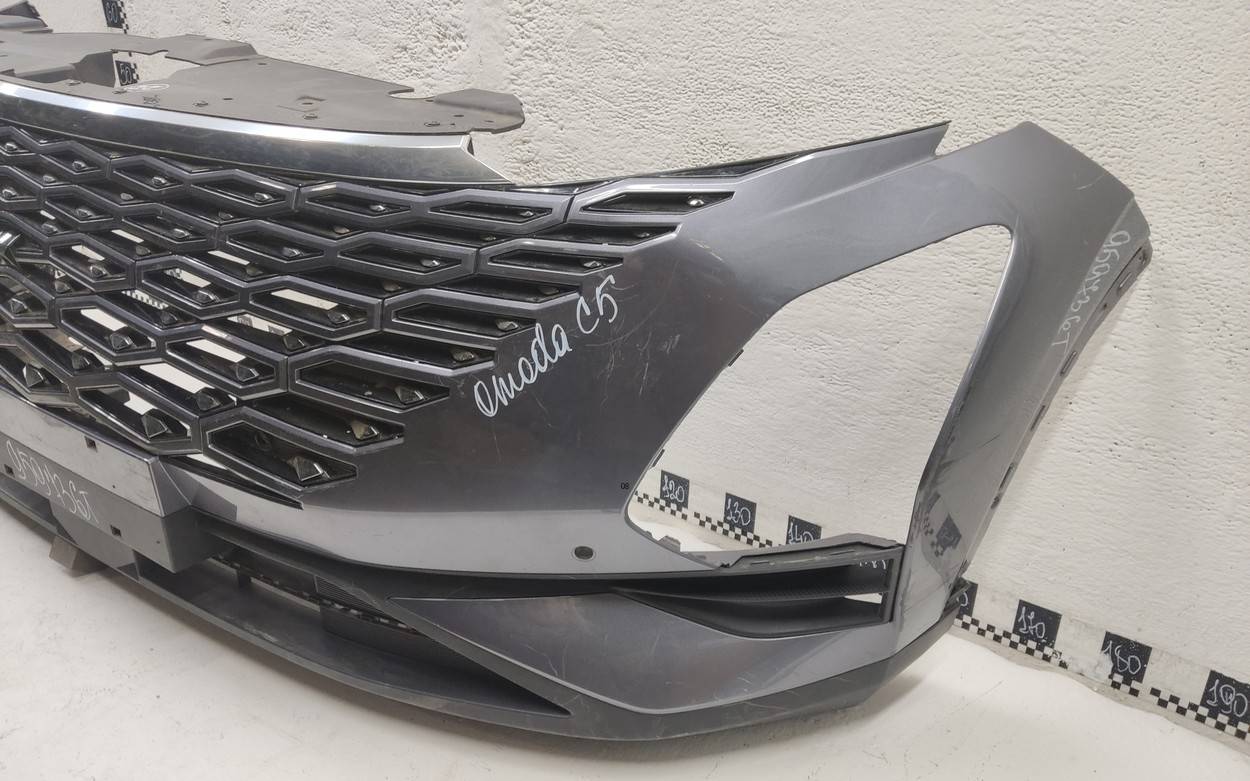 Состояние детали хорошее. Серого цвета под парктроники. Царапины. Отсутствуют два верхних боковых крепления и одно центральное под решетку. Потребуется незначительный ремонт Бампер передний для Omoda C5 (T19C) 2022>