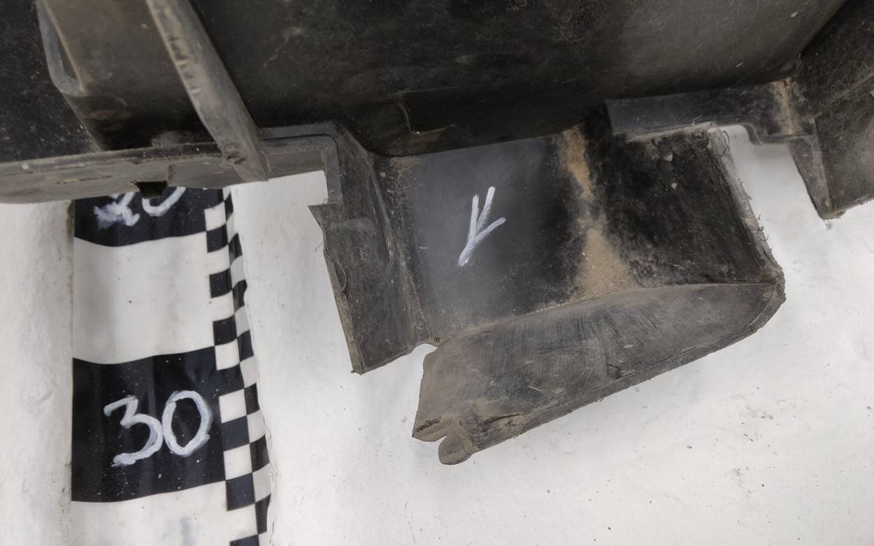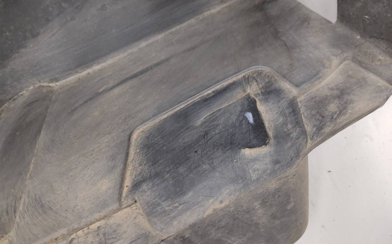 Состояние детали хорошее. Потёртость. Трещинка на левой заглушке. Отсутствуют два крепления, одно левое лопнуло, дефект пластика в нижней части. Потребуется незначительный ремонт