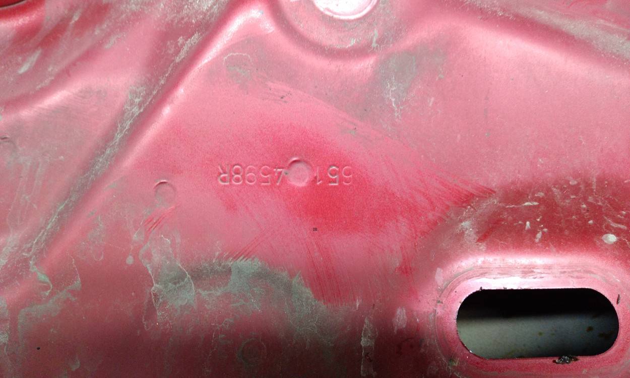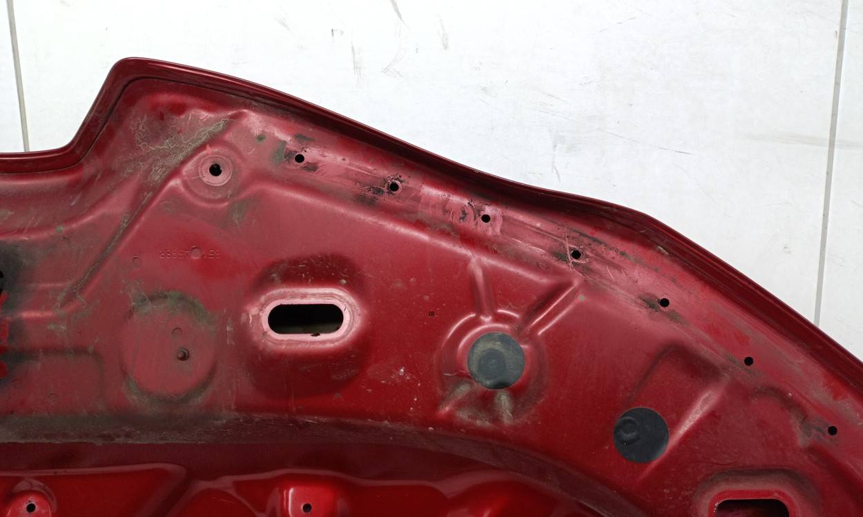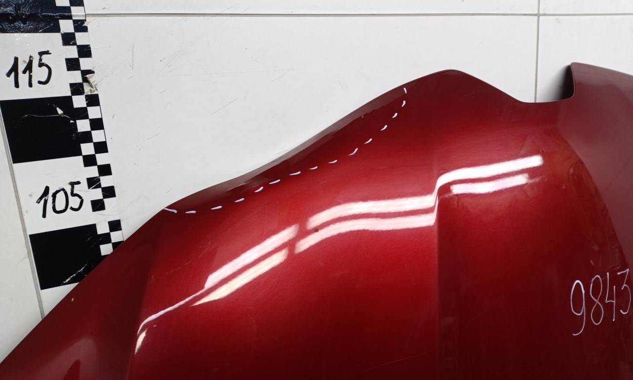 Состояние детали хорошее. Красного цвета, потертости, царапинки. Загнута кромка спереди слева. Потребуется ремонт и покраска