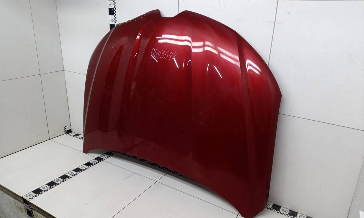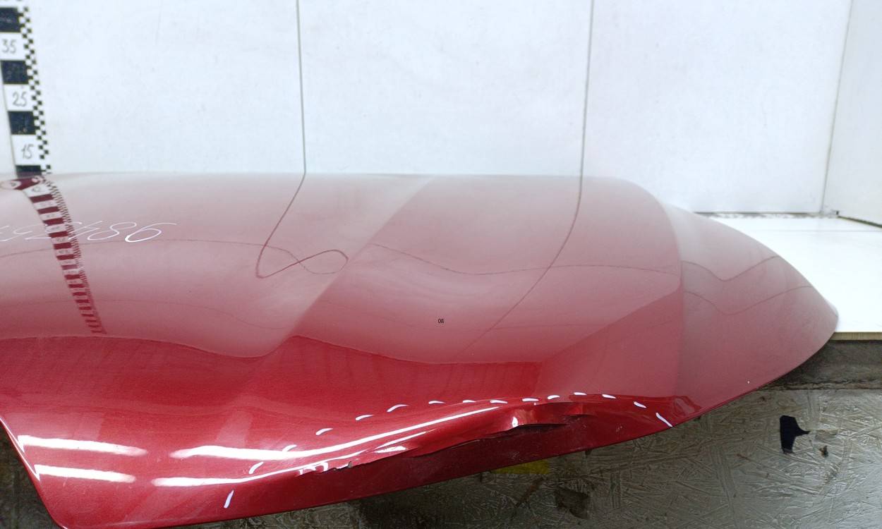Состояние детали хорошее. Красного цвета, потертости, царапинки. Загнута кромка спереди слева. Потребуется ремонт и покраска Капот для Renault Arkana 2019>