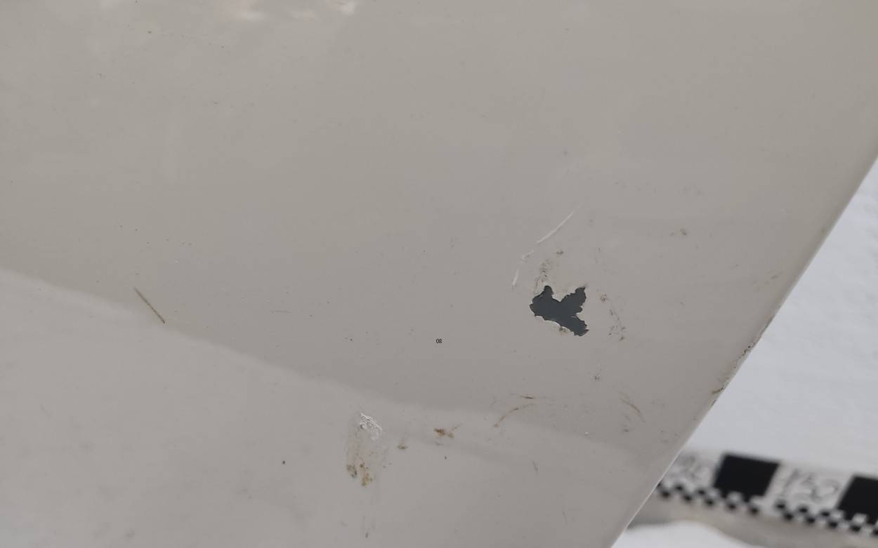 Состояние детали хорошее. Серебристого цвета, скол ЛКП. Лёгкие транспортировочные вмятинки. Может потребоваться незначительный ремонт