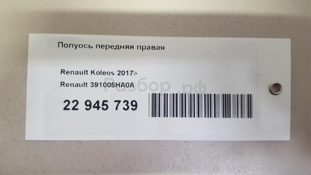 2.5 16V 2TR707 АКПП 391005HA0A Полуось передняя правая для Renault Koleos (HZ) 2016>