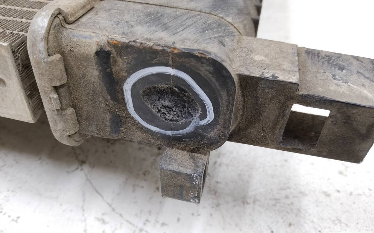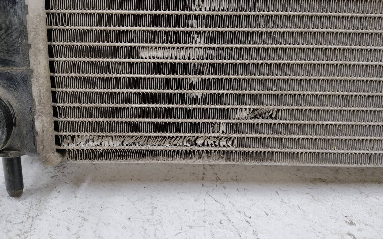 Состояние детали хорошее. Вмятинки, дефект сот. Отсутствует одна направляющая. Потребуется незначительный ремонт Радиатор охлаждения двигателя основной для Renault Logan II (L8) 2014>
