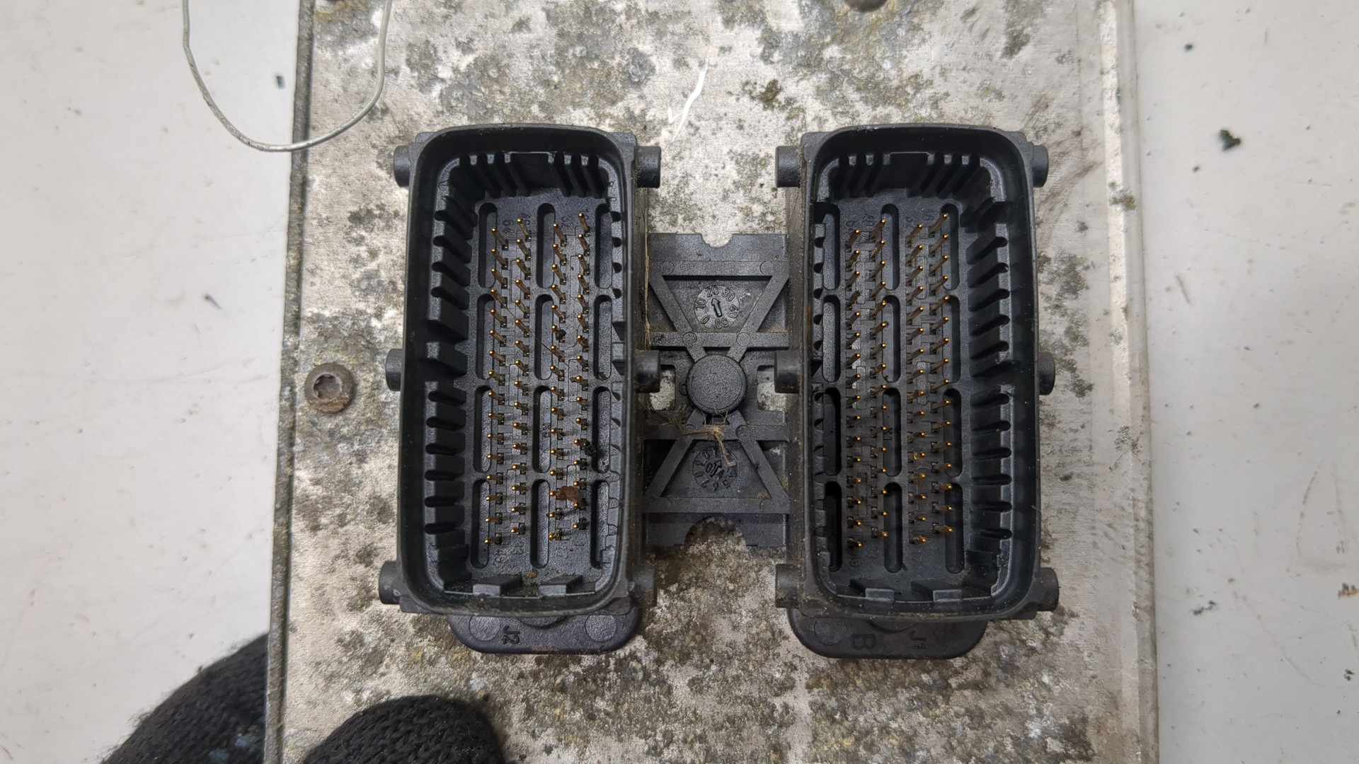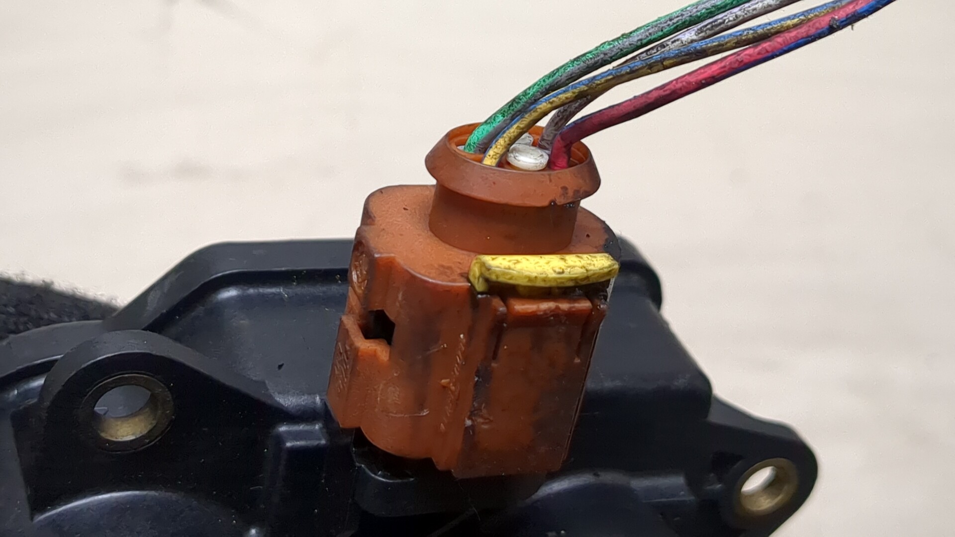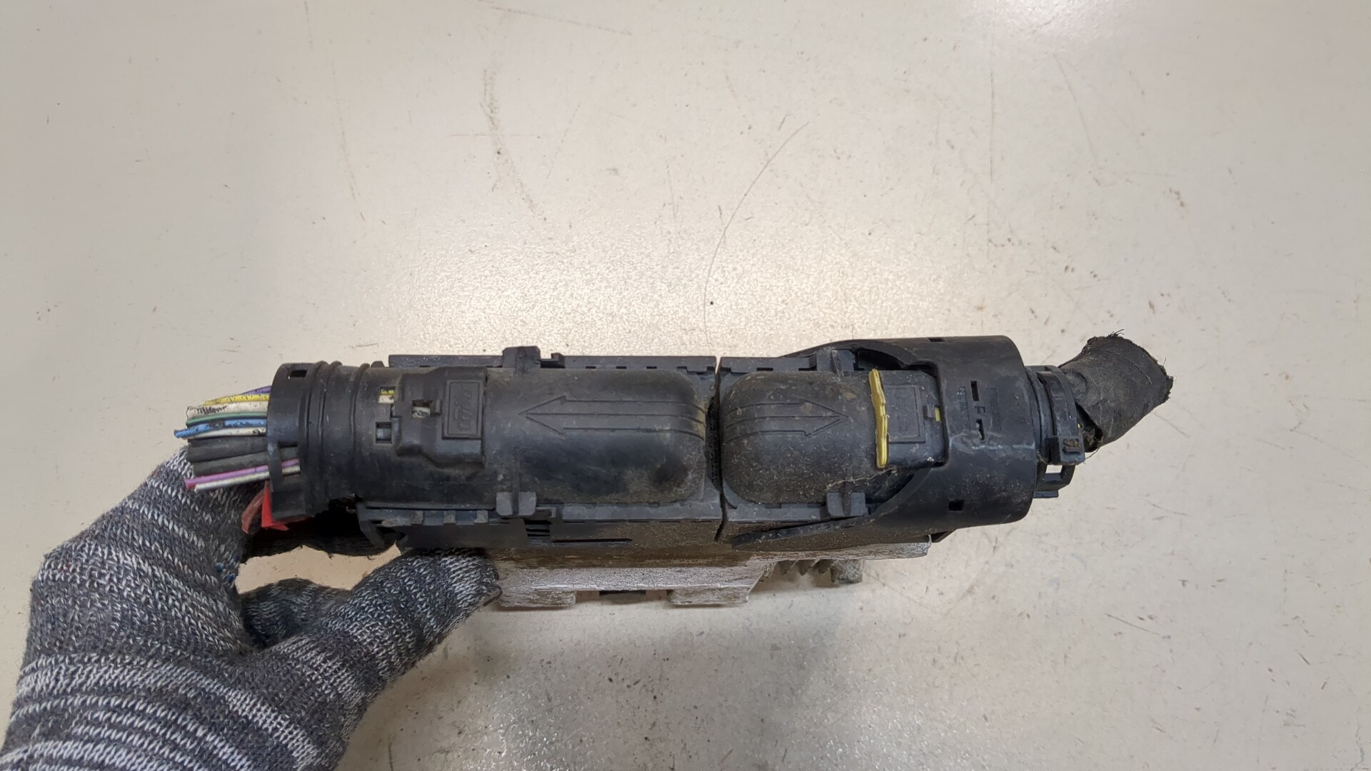 Состояние детали удовлетворительное. Трещины пластика. Контакты целые. Отсутствуют два крепления, одно сломано. На запчасти