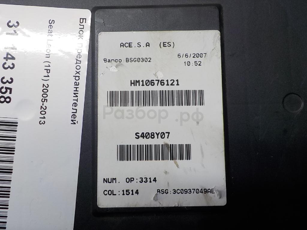 УПРАВЛЕНИЯ БОРТОВОЙ СЕТИ 3C8937049EZ0J Блок предохранителей для Seat Leon (1P1) 2005-2012