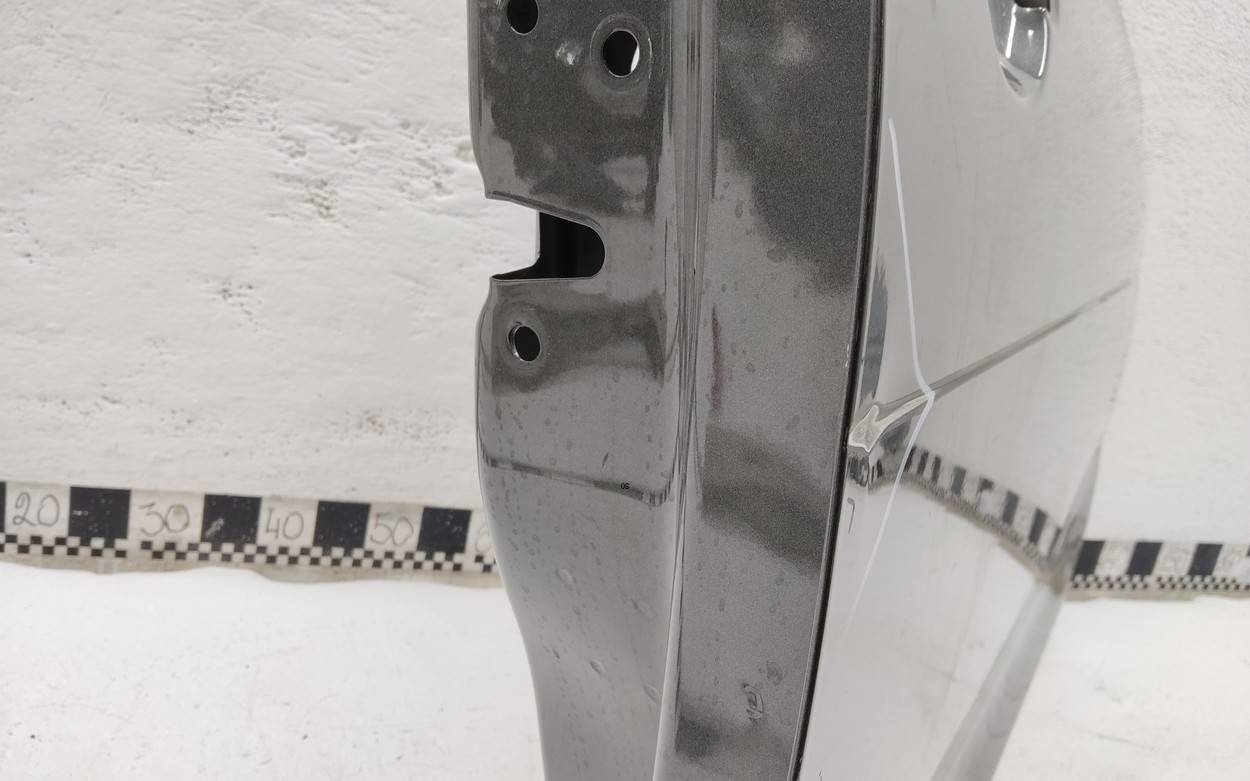 Состояние детали удовлетворительное. Серебристого цвета, потертости, царапины. Притертость с вмятиной и вмятинки по плоскости. Потребуется ремонт и покраска