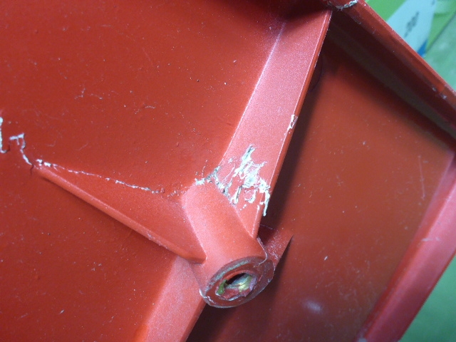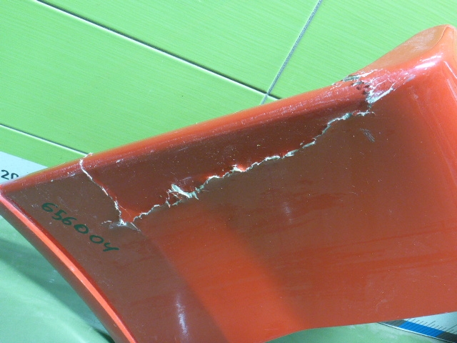 Состояние детали хорошее. Белого цвета, потёртости, царапины. Небольшой дефект пластика верхней части, трещинка на креплении. Потребуется ремонт и покраска