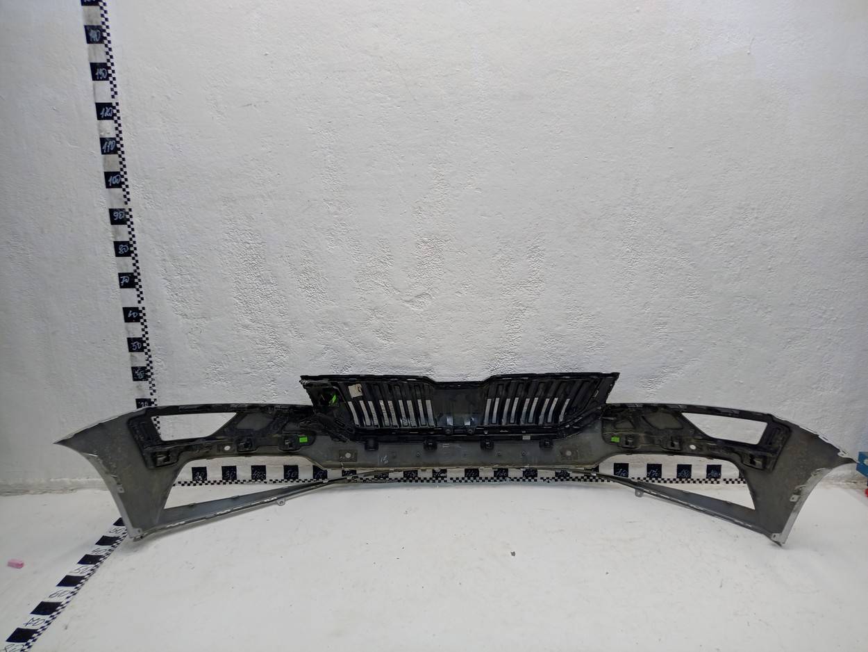 Состояние детали хорошее. Следы эксплуатации, в сборе с решеткой радиатора. Дефект 1 крепления, дефекты пластика бампера и решетки на фото. Ремонтопригодно Бампер передний для Skoda Karoq (NU7) 2017>