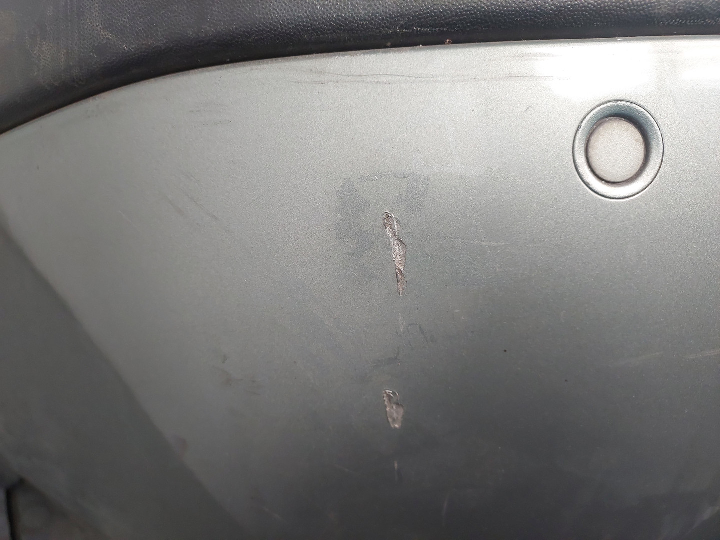 Состояние детали хорошее. Чёрного цвета в сборе с решётками, абсорбером верхним кронштейном и под радар. Сколы на решетке. Разбита эмблема (подсветка на месте). Вмятина в центральной части. Дефект двух креплений. Потребуется незначительный ремонт