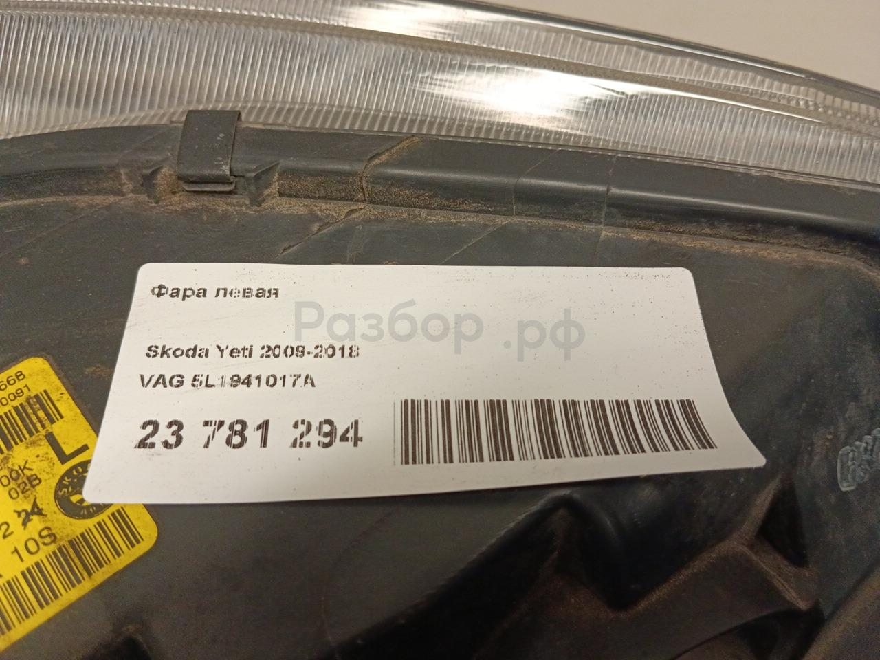 ДО 2014 ГОДА НЕ КСЕНОН 5L1941017A Фара левая для Skoda Yeti (5L) 2009-2018