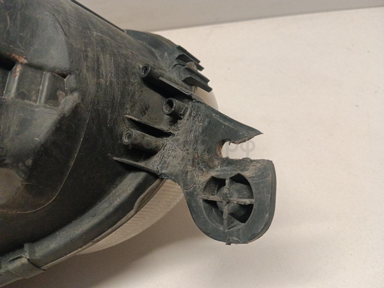 Состояние детали удовлетворительное. Глубокая царапина на стекле. Глубокая царапина на стекле дефект одного бокового крепления. Требуется ремонт крепления полировка стекла