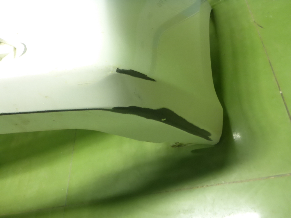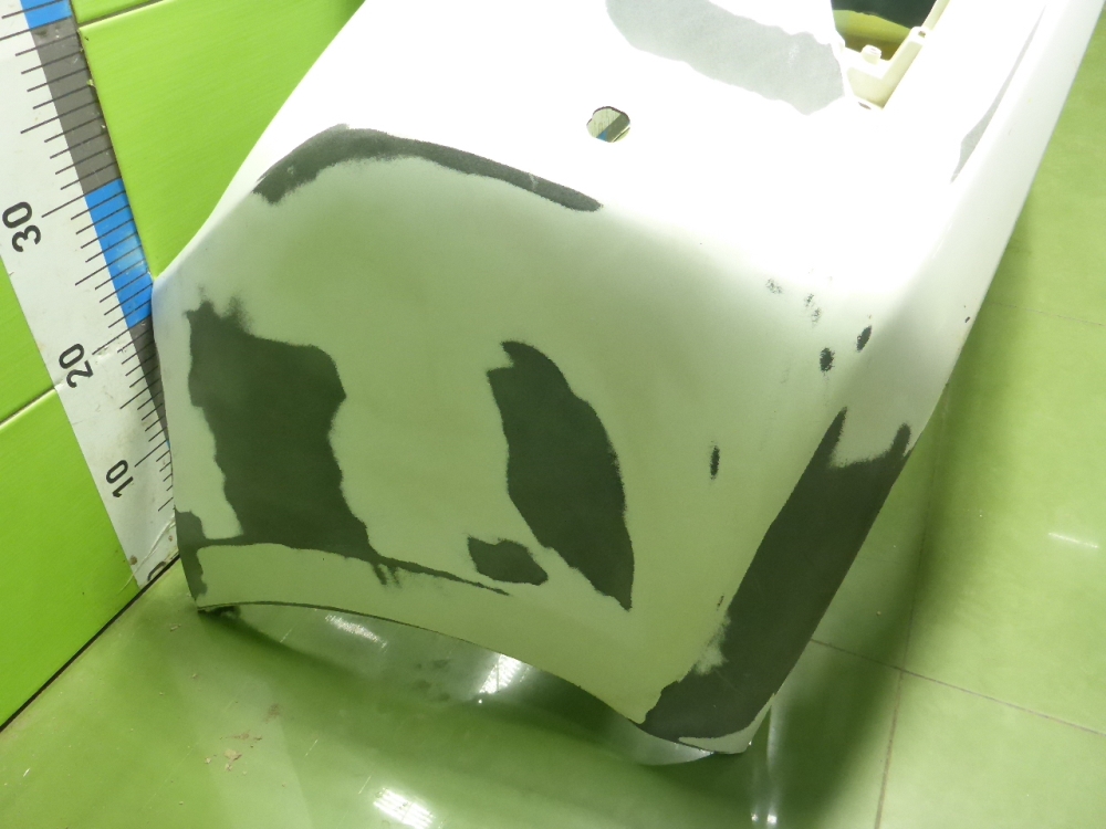 Состояние детали удовлетворительное. Чёрного цвета, срезана с автомобиля. Небольшая вмятинка и следы коррозии в этом месте. Под ремонт