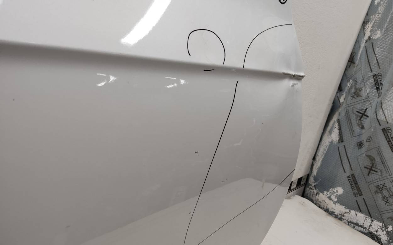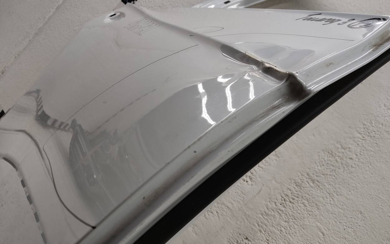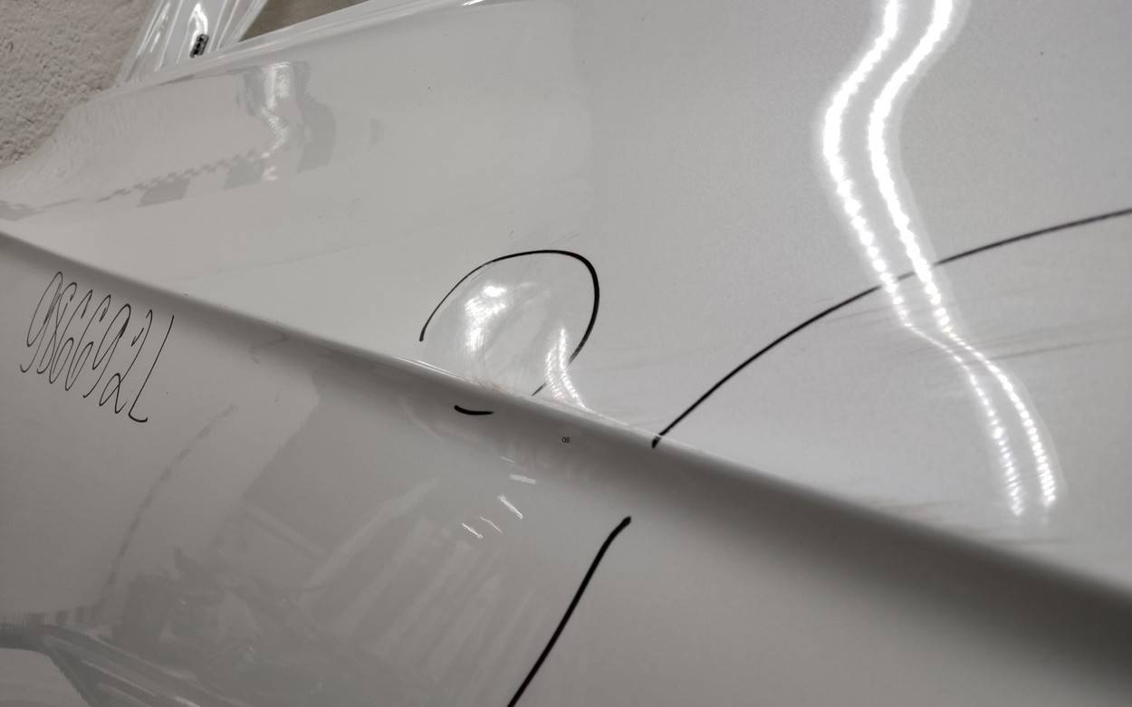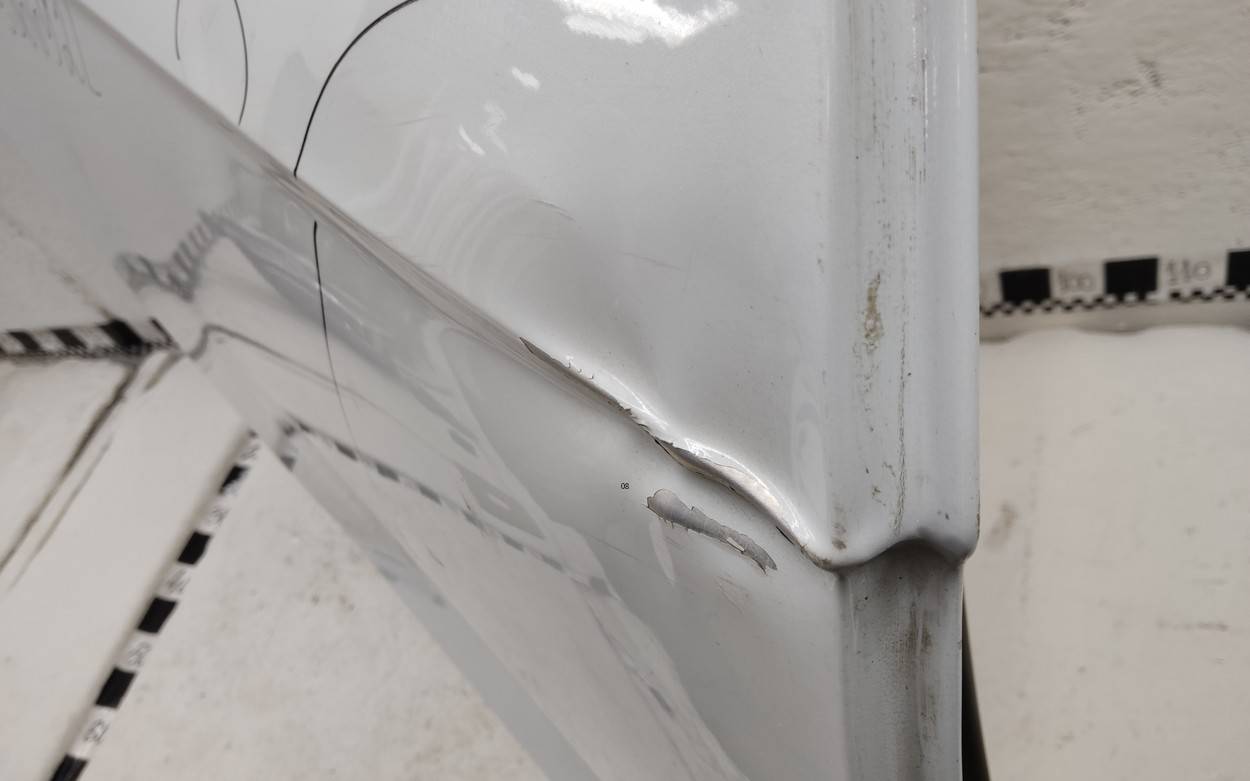 Состояние детали хорошее. Белого цвета, скол ЛКП. Небольшие вмятины. Потребуется ремонт