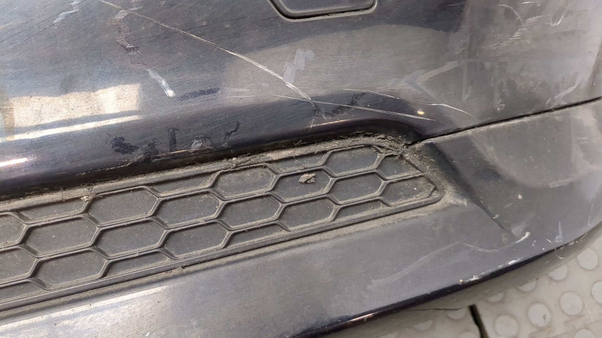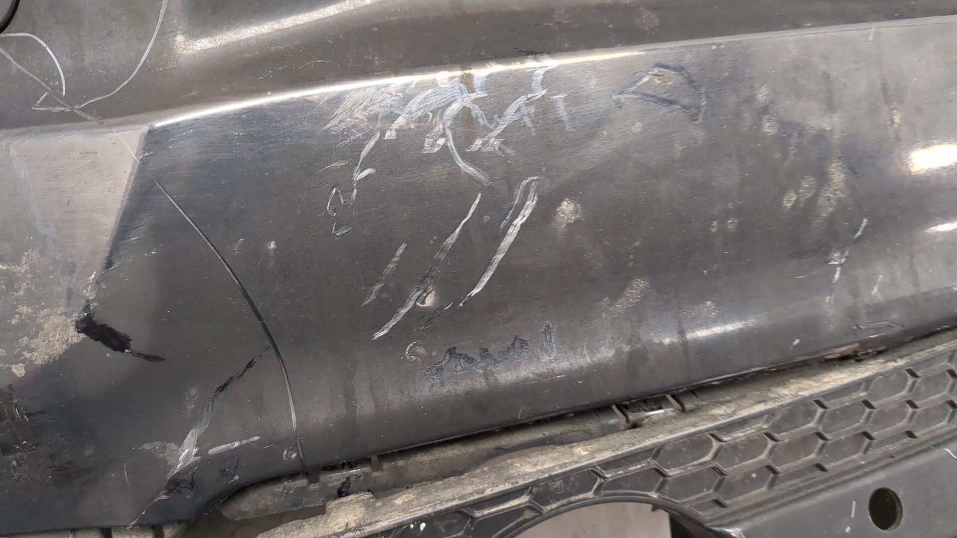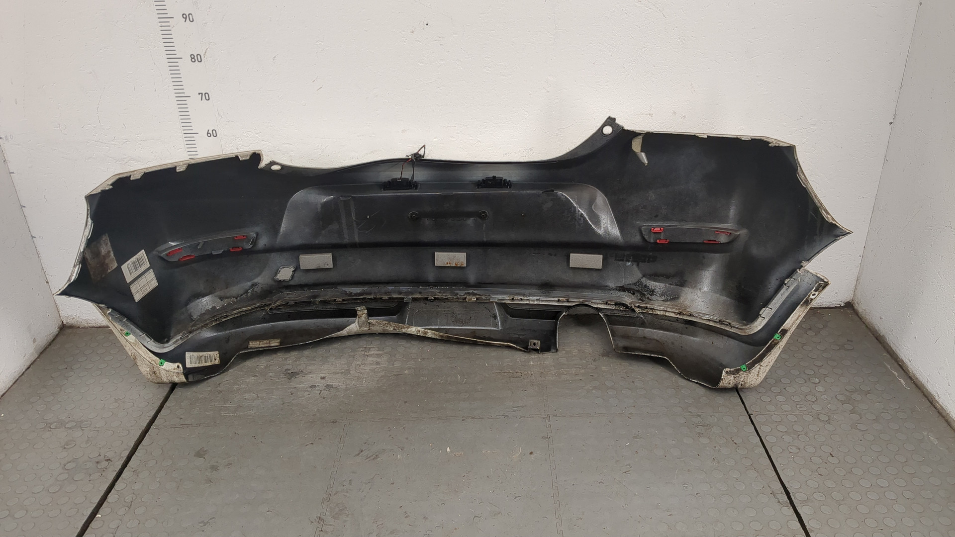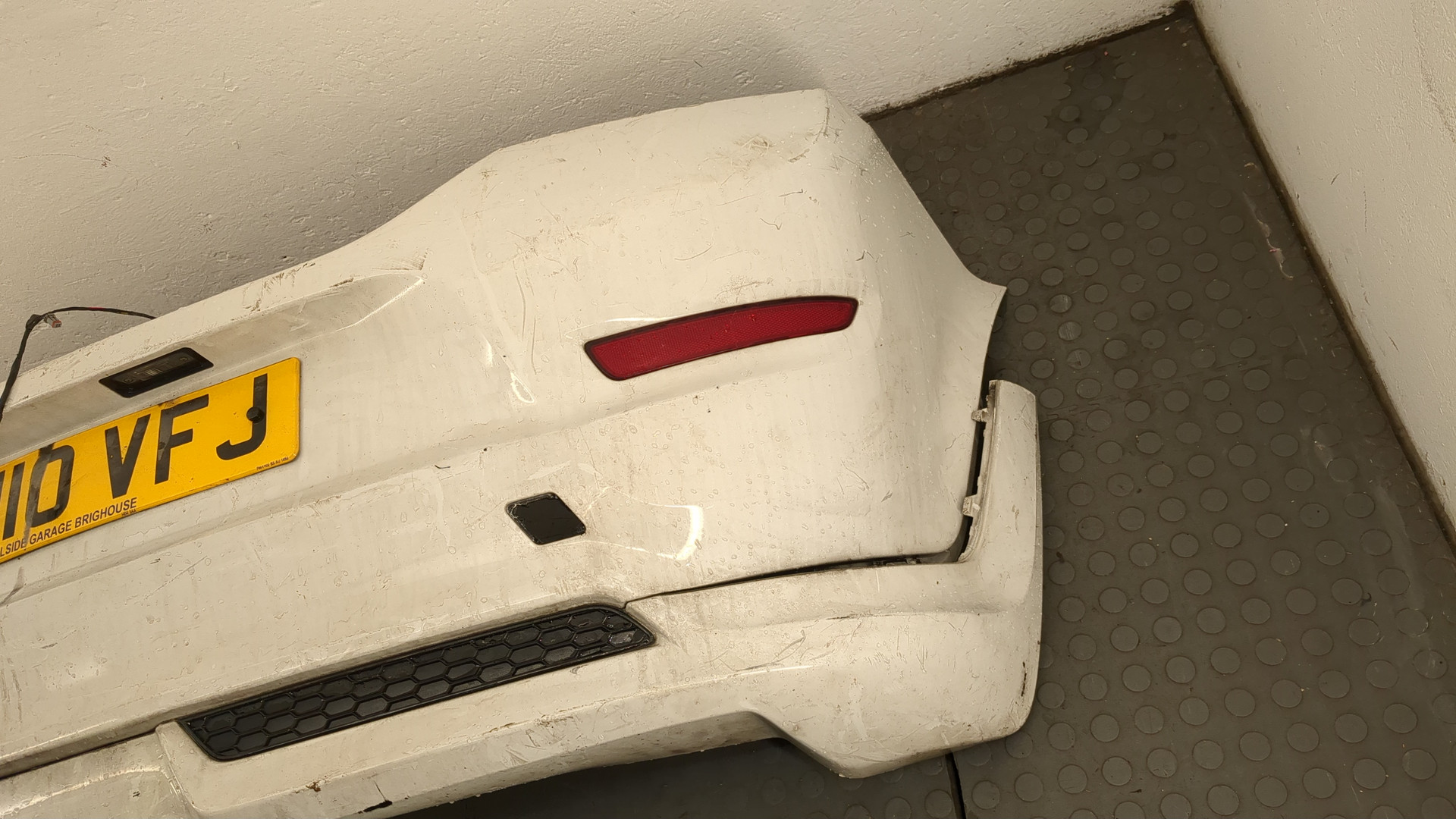 Состояние детали удовлетворительное. Белого цвета. Вмятины. Крепления на месте. Потребуется ремонт