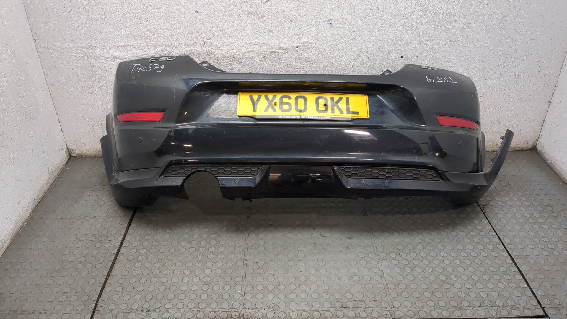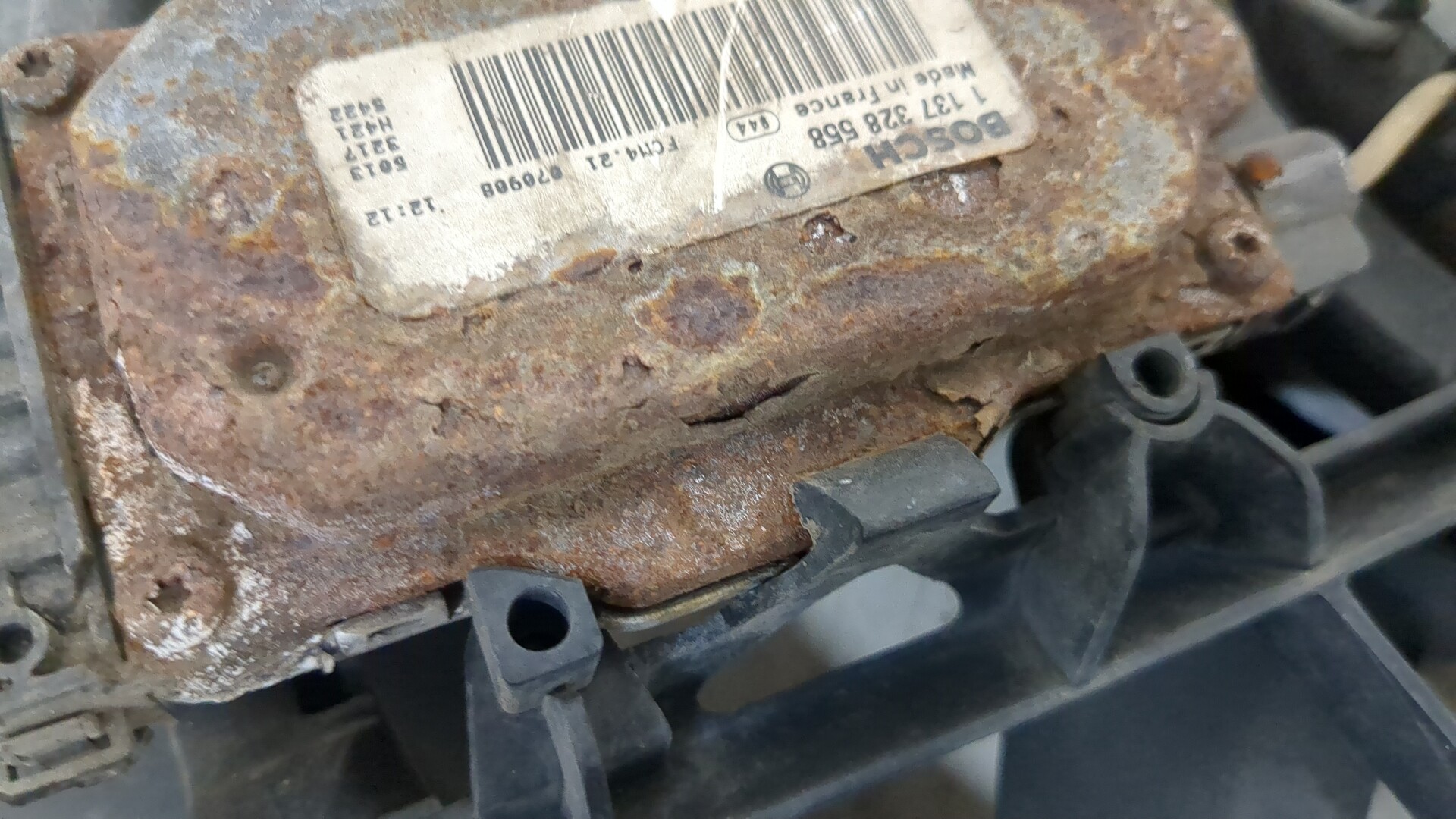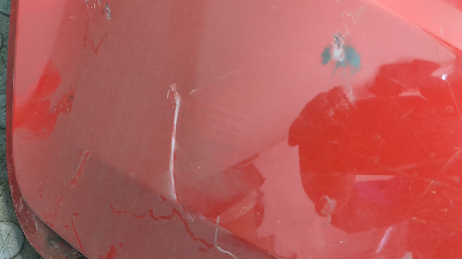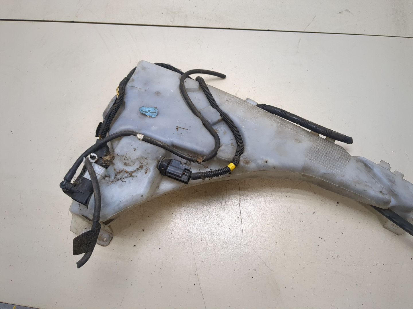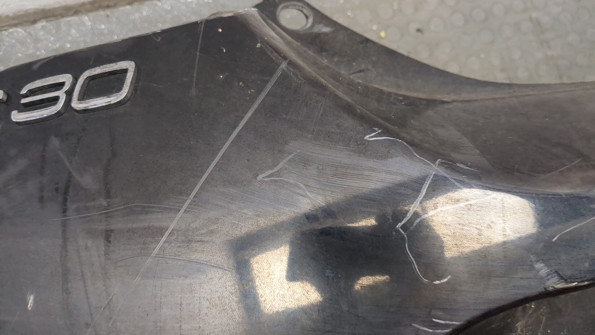 Состояние детали удовлетворительное. Белого цвета. Вмятины. Крепления на месте. Потребуется ремонт