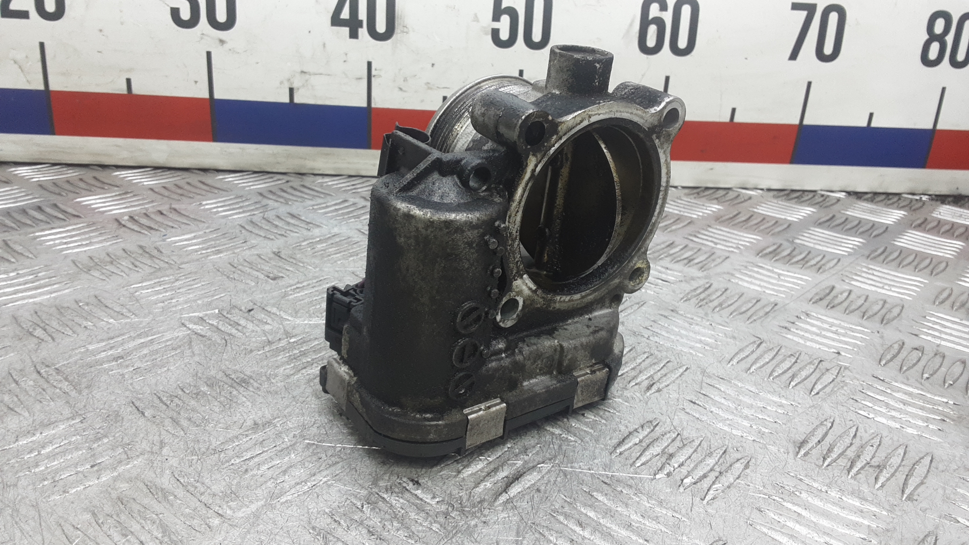 Состояние детали удовлетворительное. Следы эксплуатации. Трещина корпуса, дефект одного крепления. Потребуется ремонт