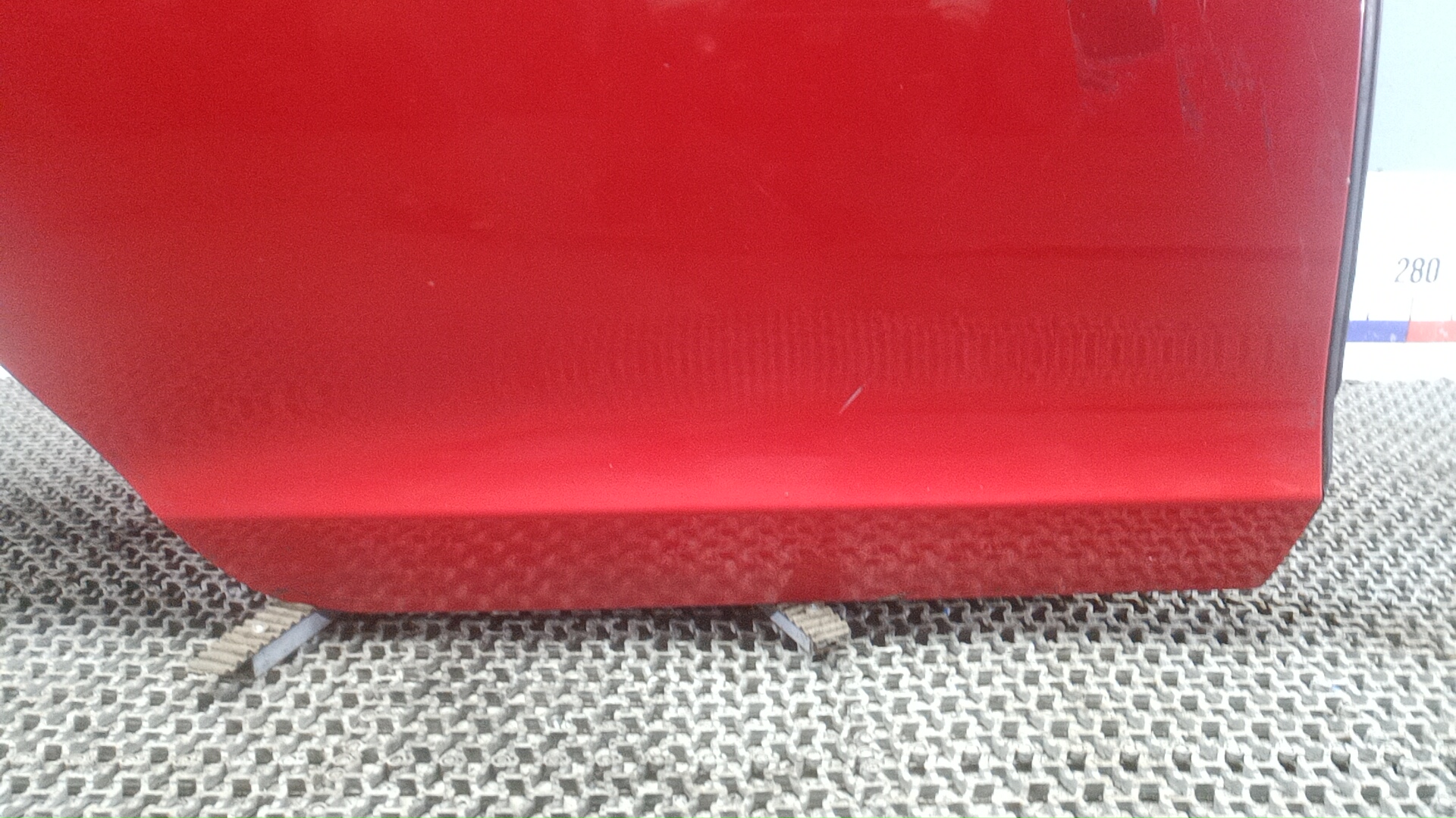 Состояние детали хорошее. Вишнёвого цвета, потертость поверхности,под покраску. Дефект металла вмятинки на фото. Под ремонт
