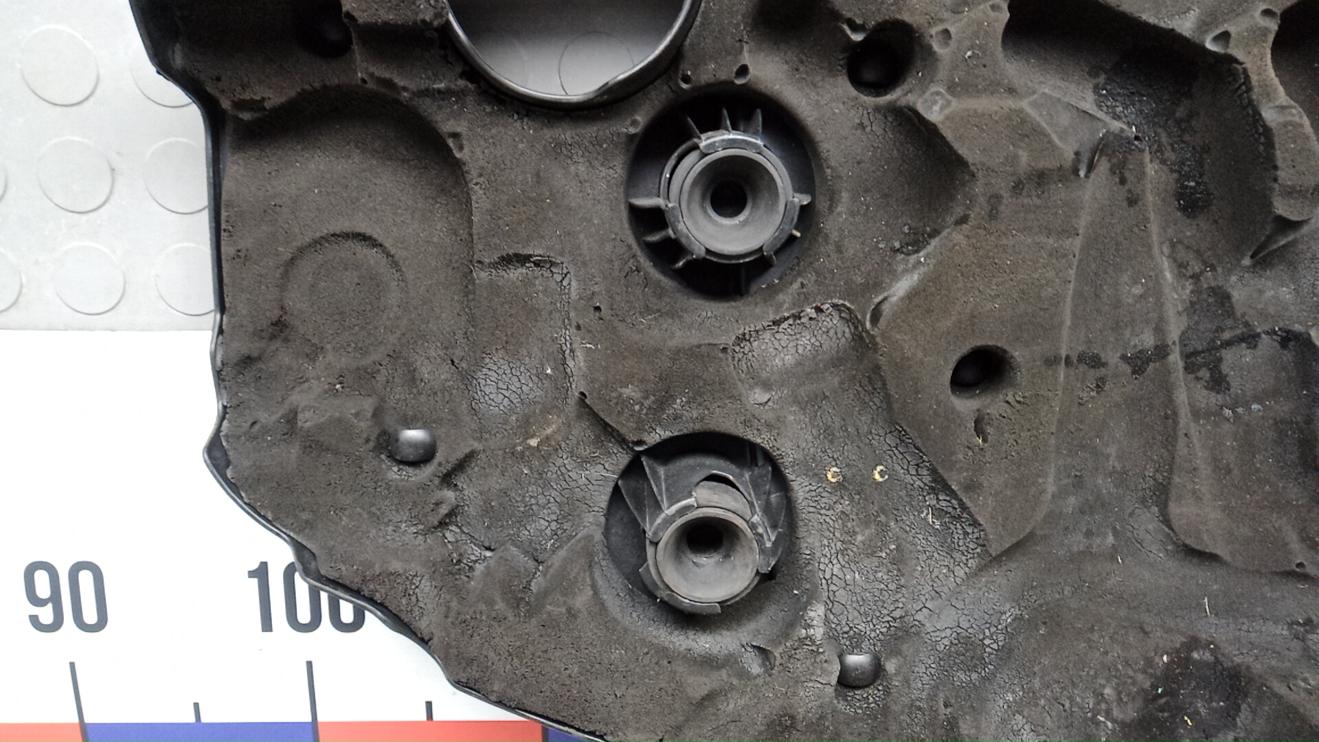Состояние детали удовлетворительное. Следы эксплуатации, цвет серый. Есть потертости, дефект одного крепления. Требуется ремонт крепления