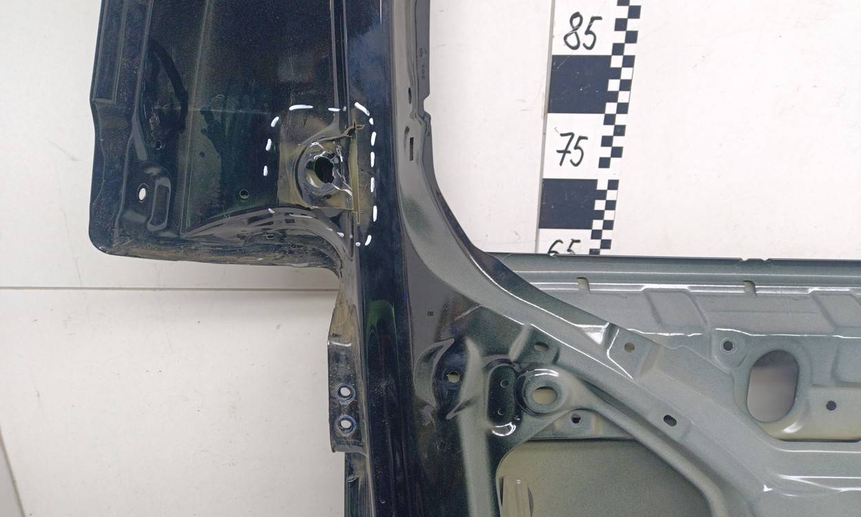 Состояние детали хорошее. Цвет двери тёмно-синий, следы эксплуатации, вмятина. Царапины и потёртости, вмятина в правой нижней части двери. Требуется ремонт и покраска